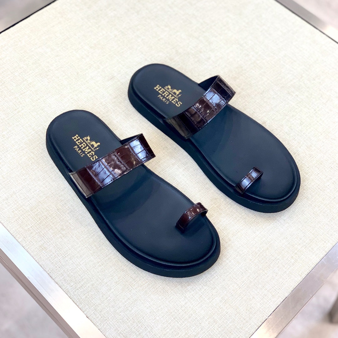 HM Men's Thong Sandals Brown Rubber Sheepskin 561669