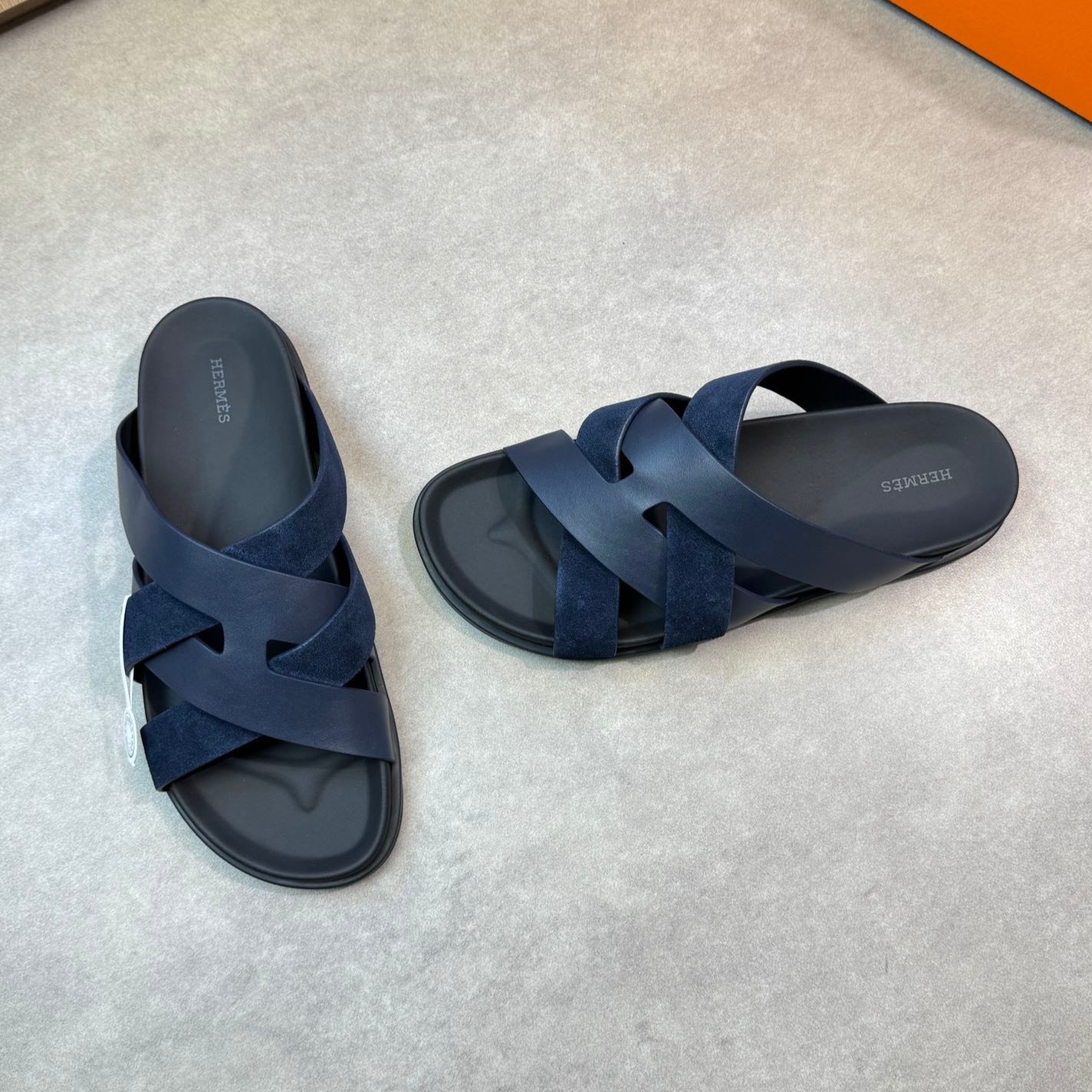 HM Men's Infra Slide Navy Blue Calfskin 602611