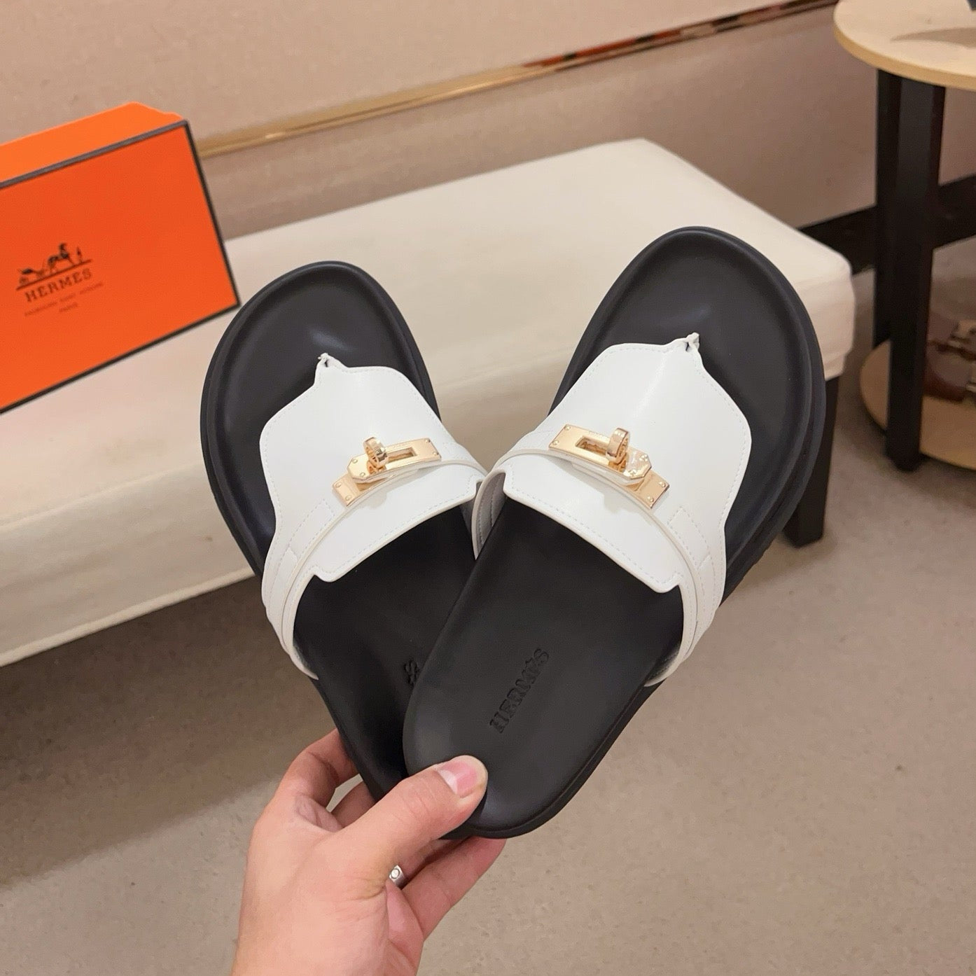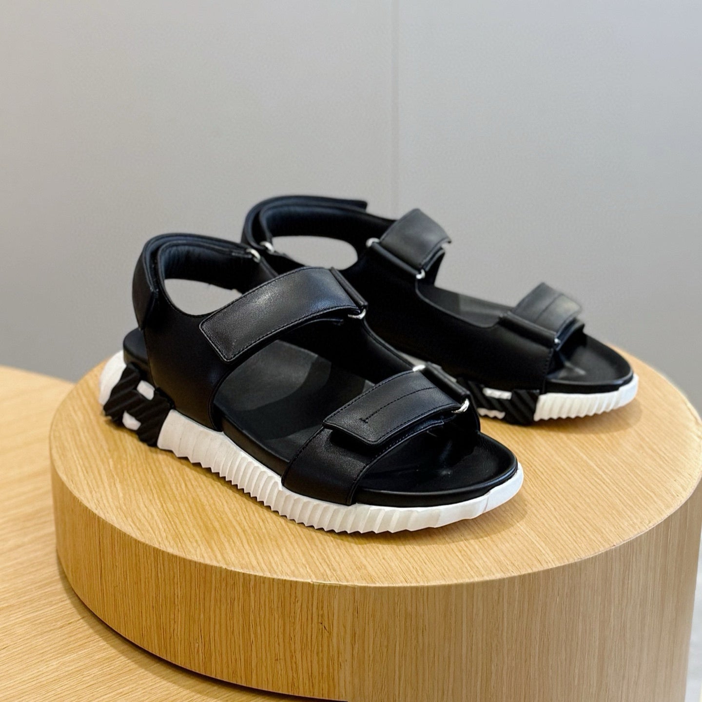 HM Men's Chypre Sandals White Black Cowhide 642697