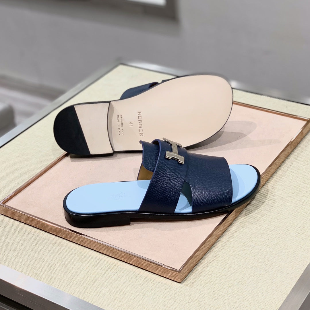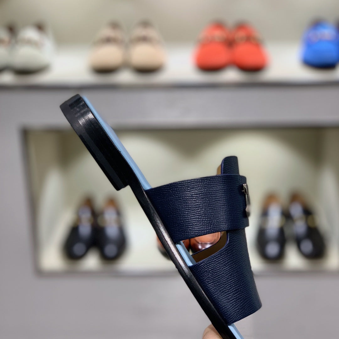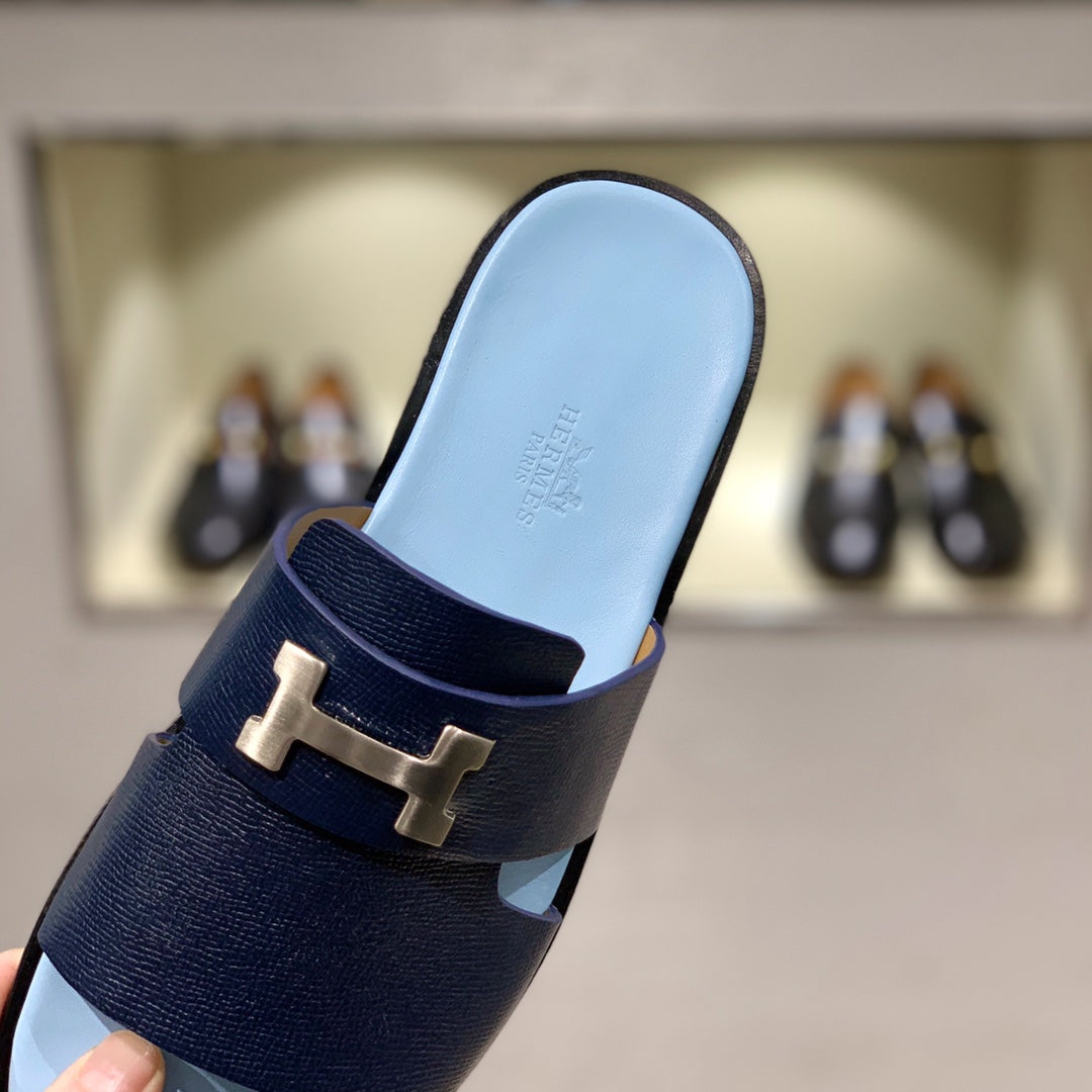 HM Men's Slide Navy Blue Cowhide 567150