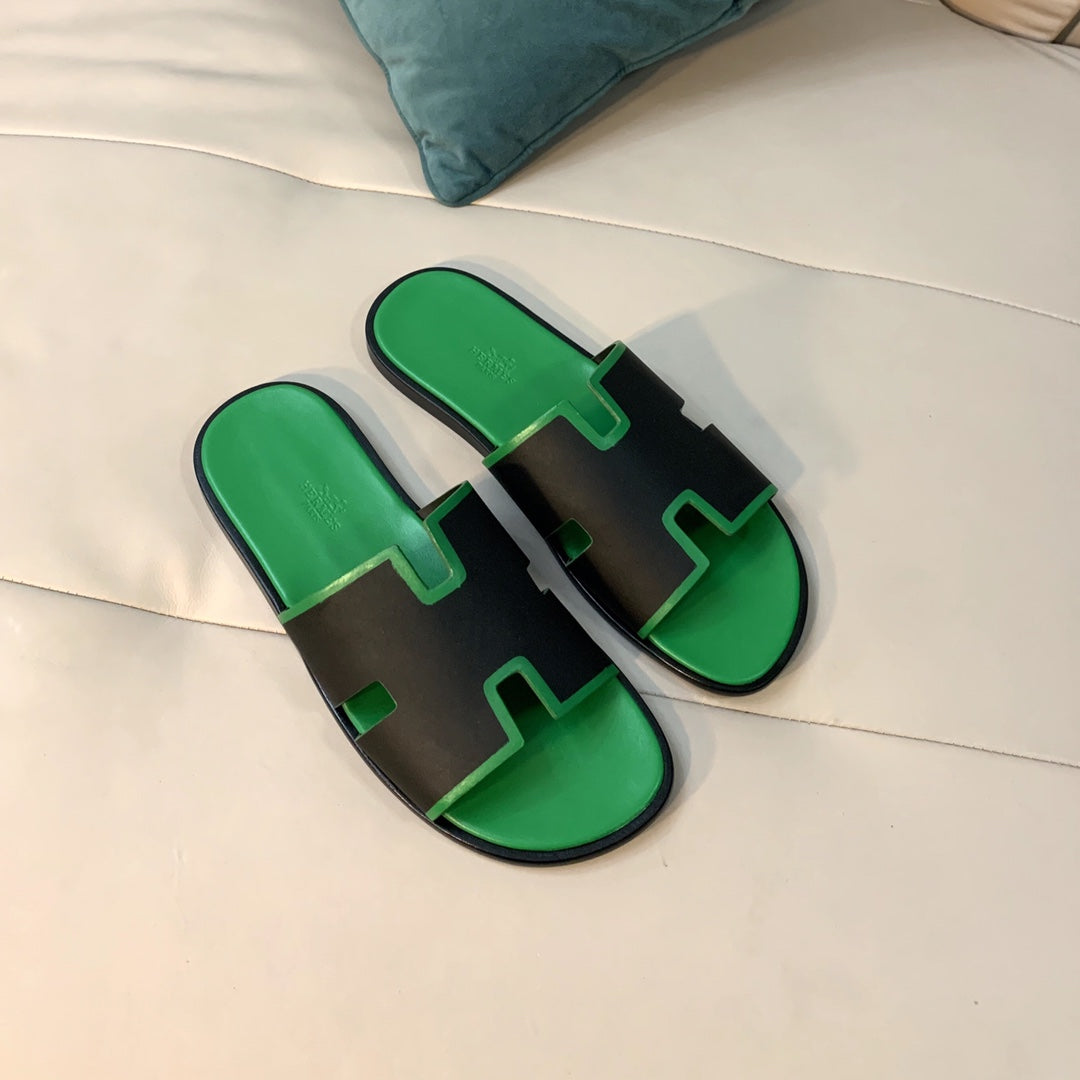 HM Men's Kazimir Slide Black Green Calfskin 562770