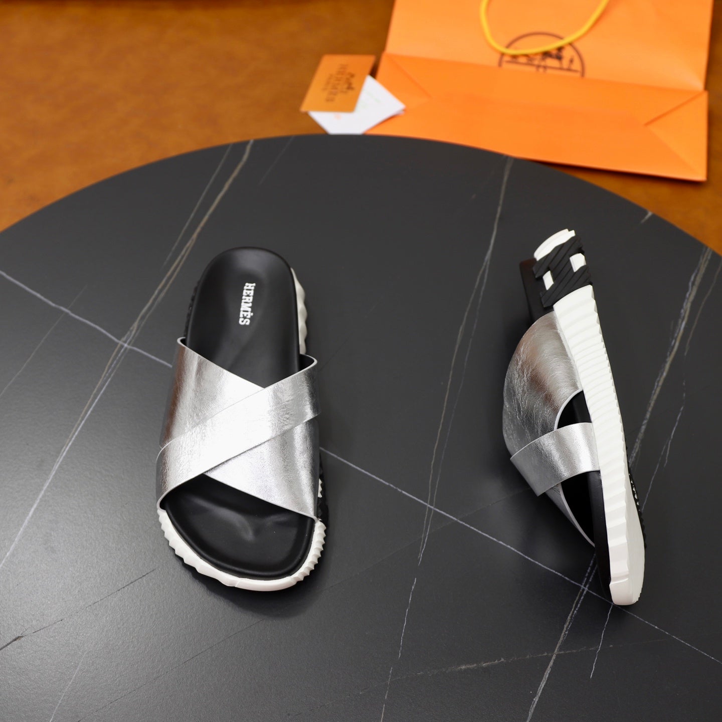 HM Men's Chypre Sandals Silver Diamond Calfskin 735677