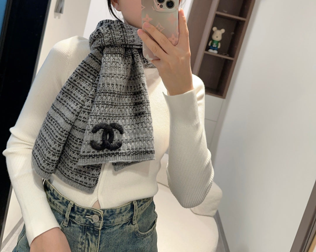 CC Scarf 180 CM In Grey Black Wool 421442