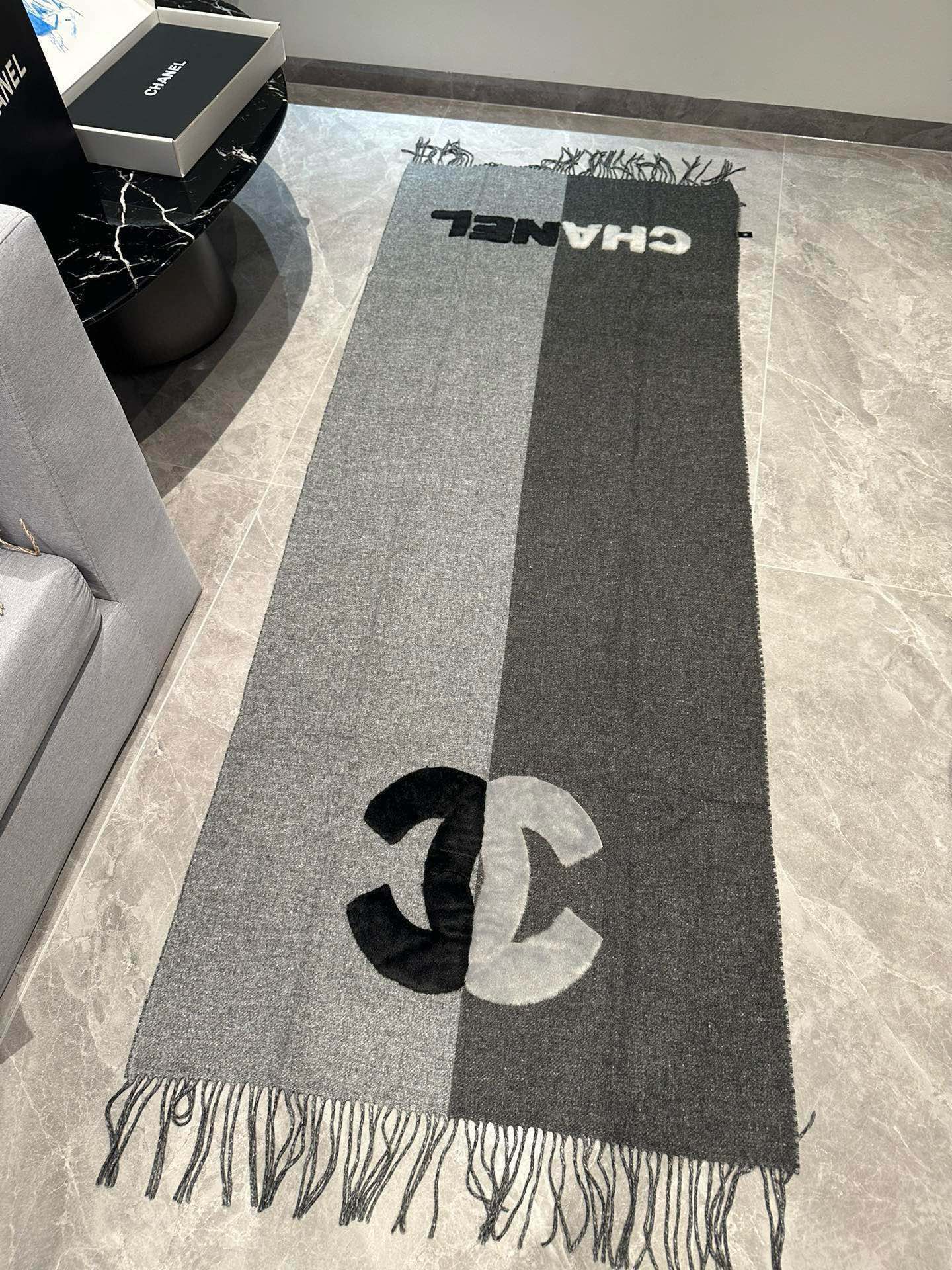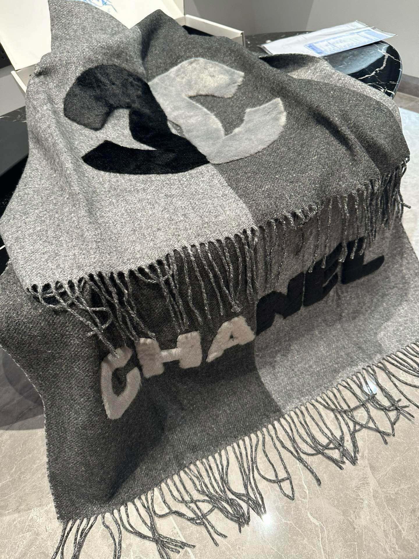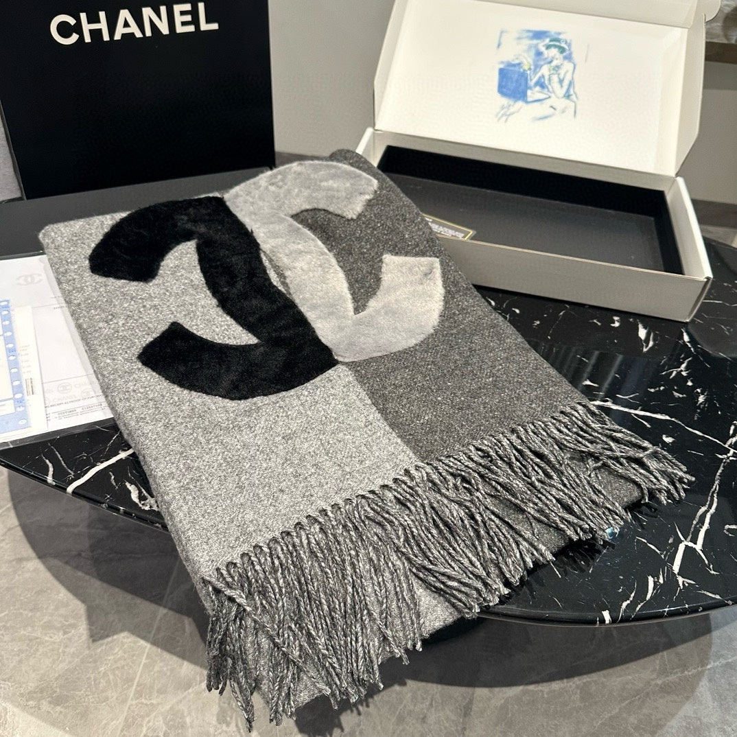 CC Scarf 200 CM In Dark Grey Mix Light Grey Fleece Wool 405153