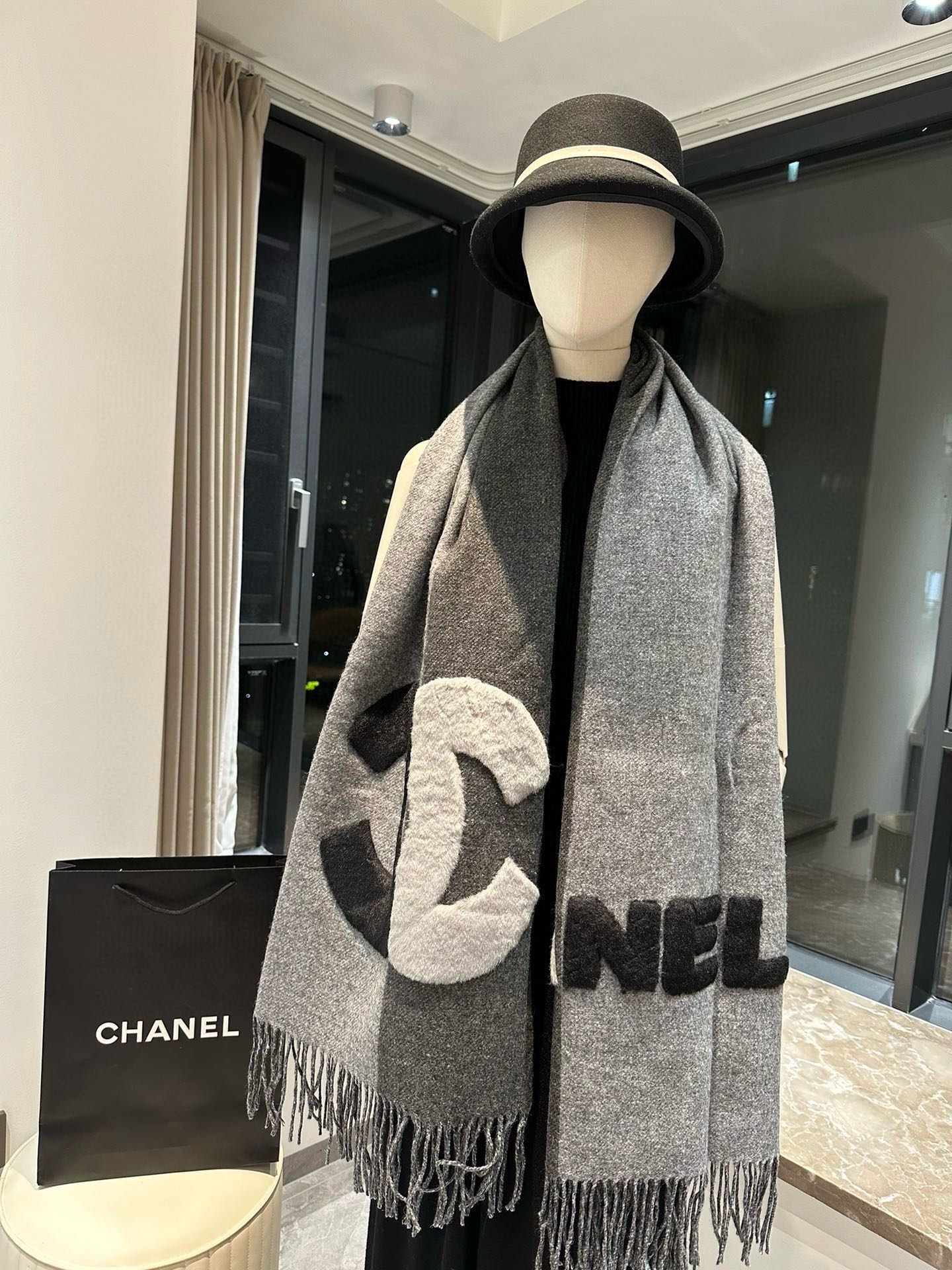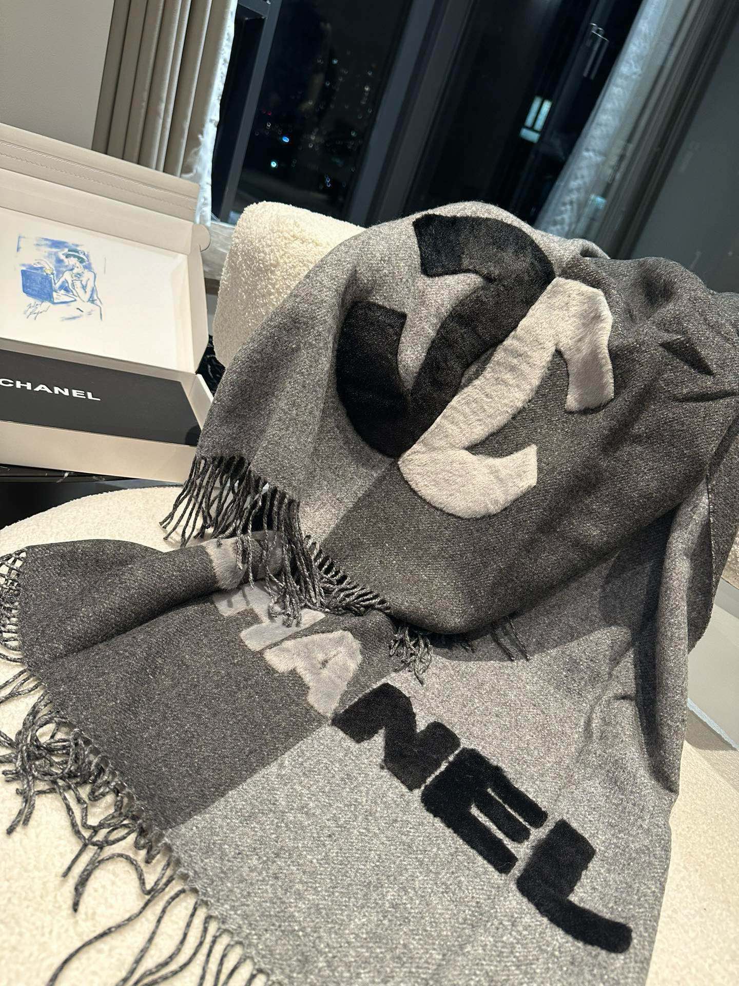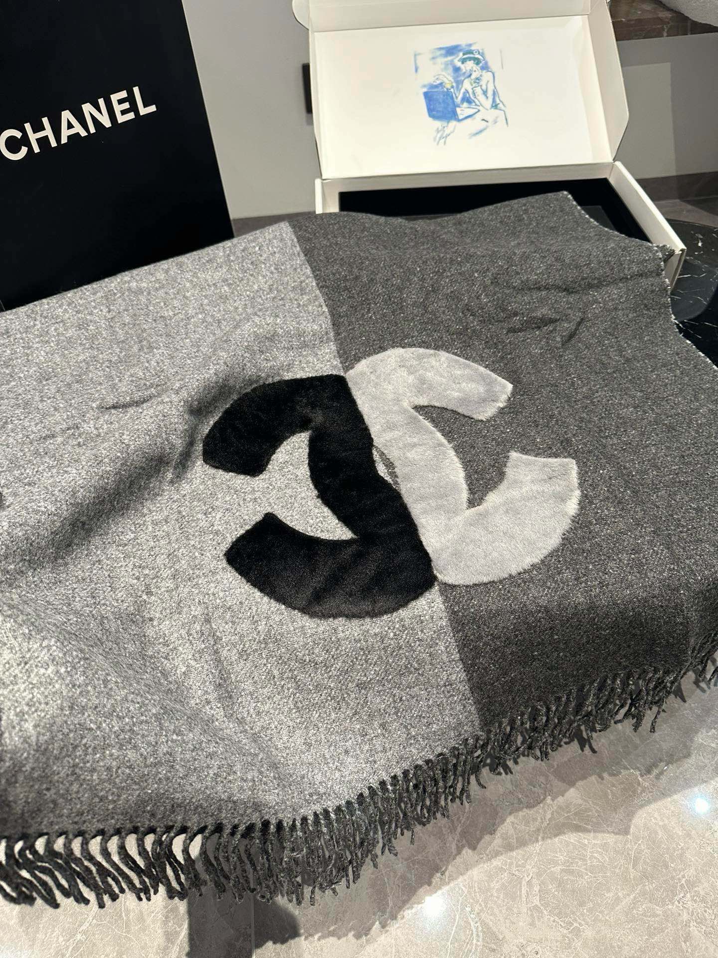 CC Scarf 200 CM In Dark Grey Mix Light Grey Fleece Wool 405153