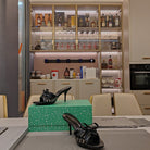 BOW-EMBELLISHED HIGH MULES IN BLACK SHEEPSKIN