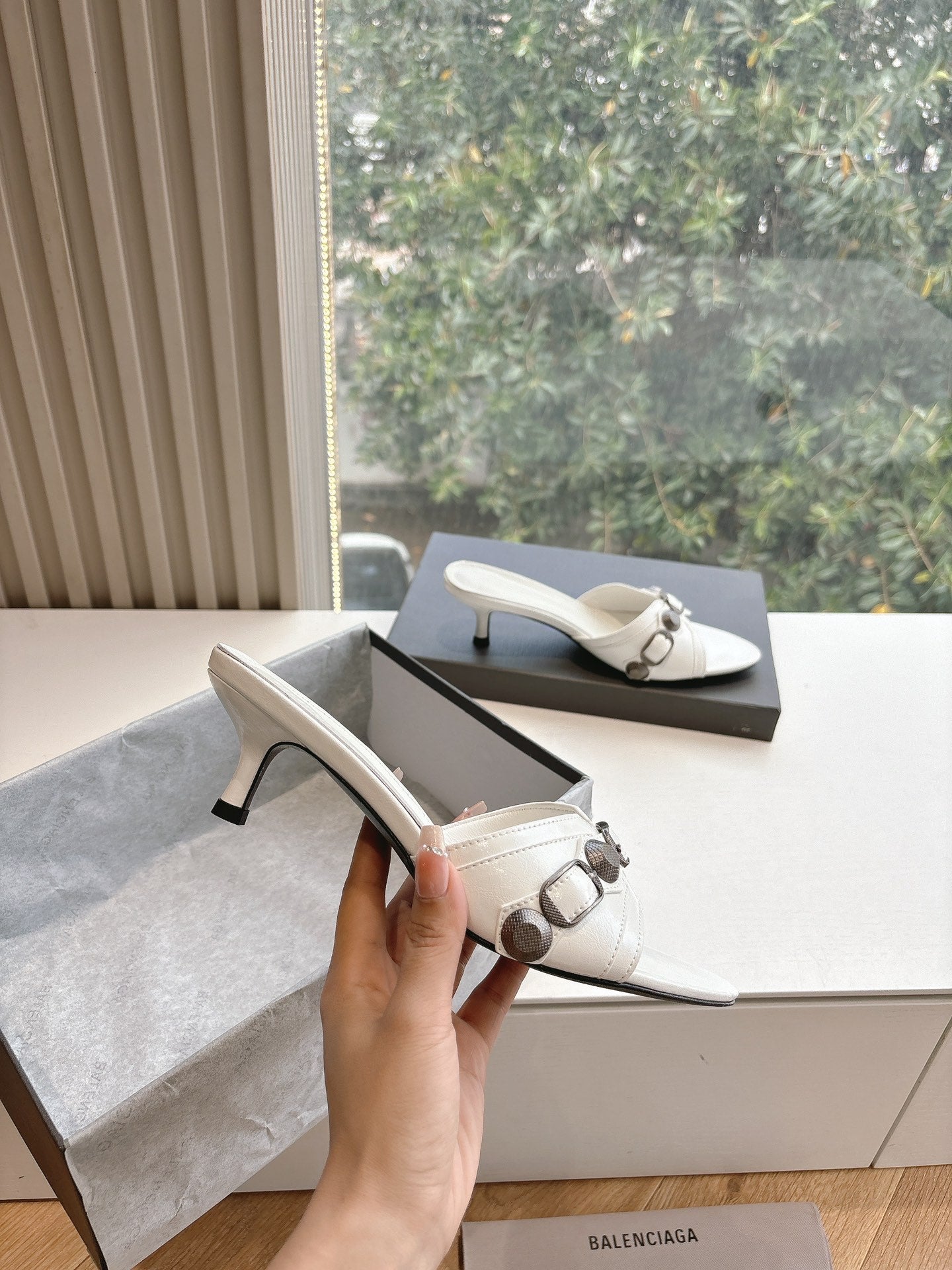 CAGOLE MID-HEEL MULES IN WHITE CALFSKIN