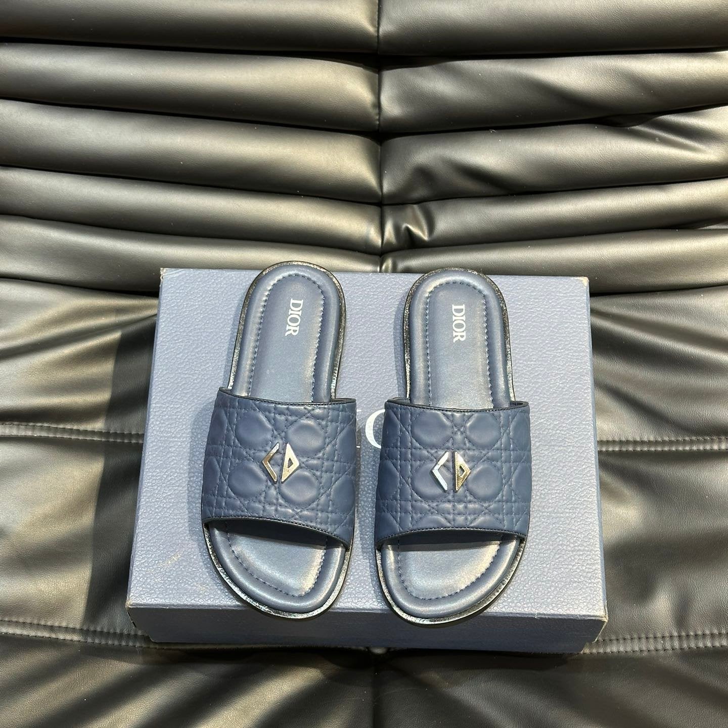 CD ALIAS SUMMER SLIPPER NAVY EMBOSSED CALFSKIN