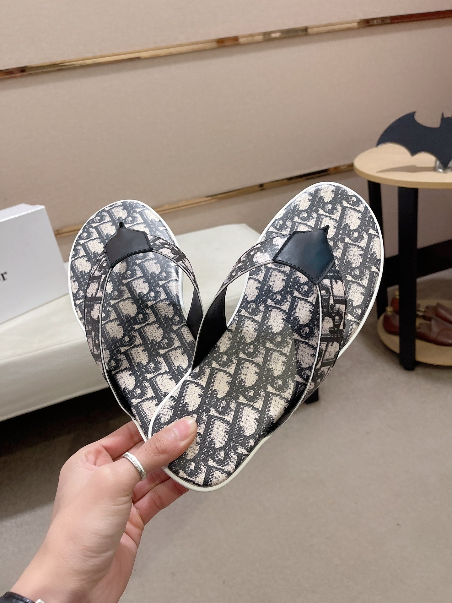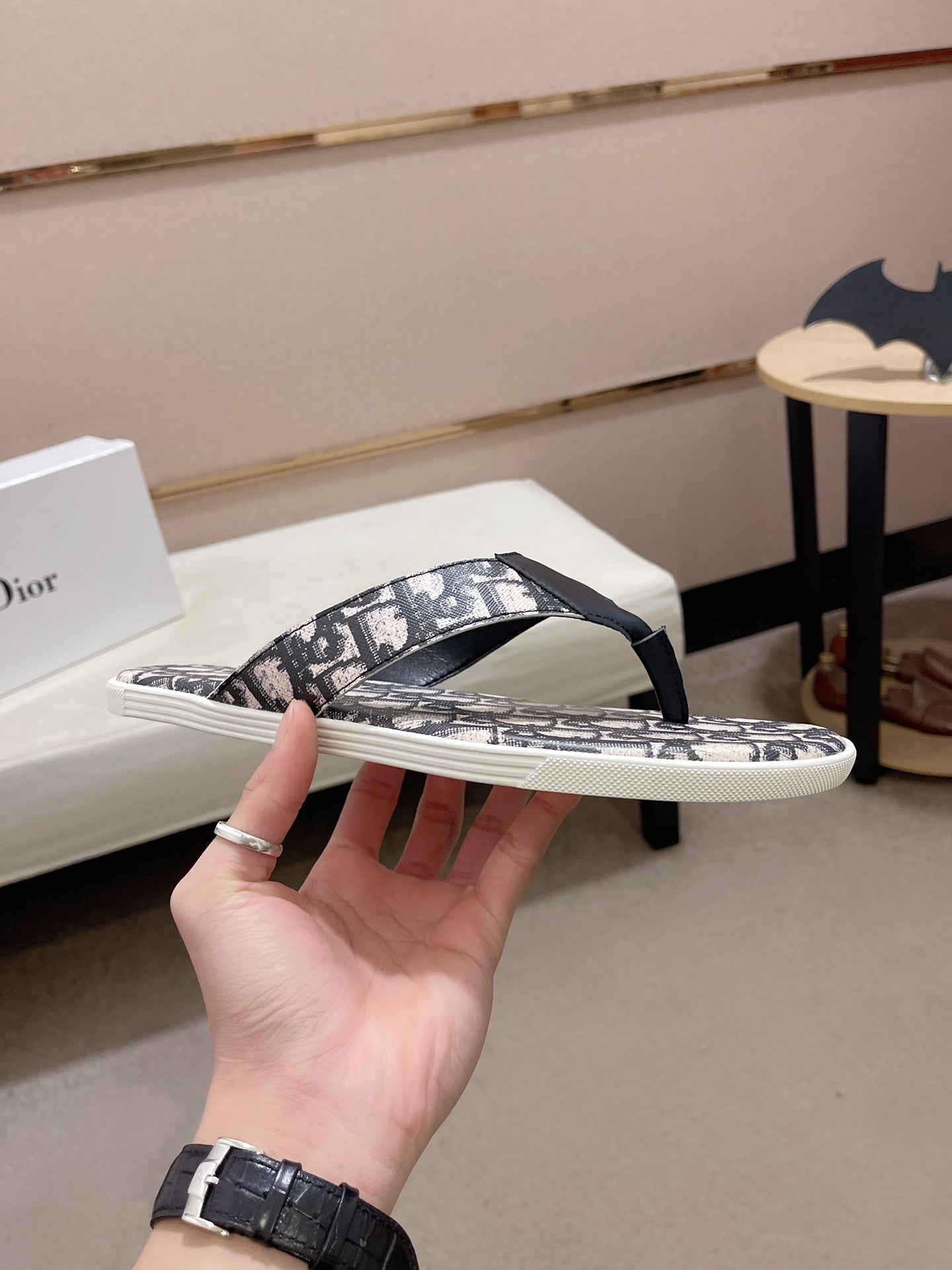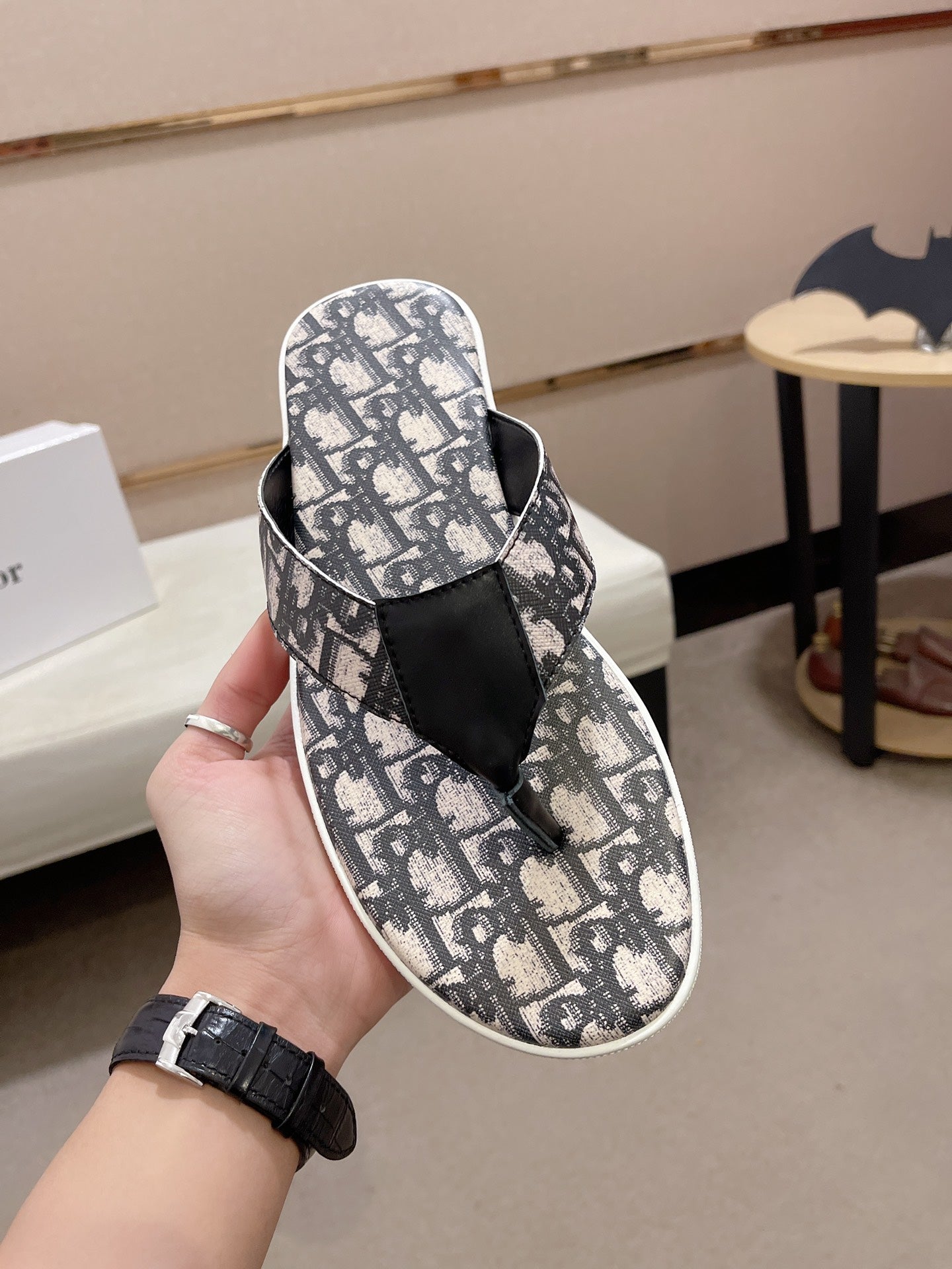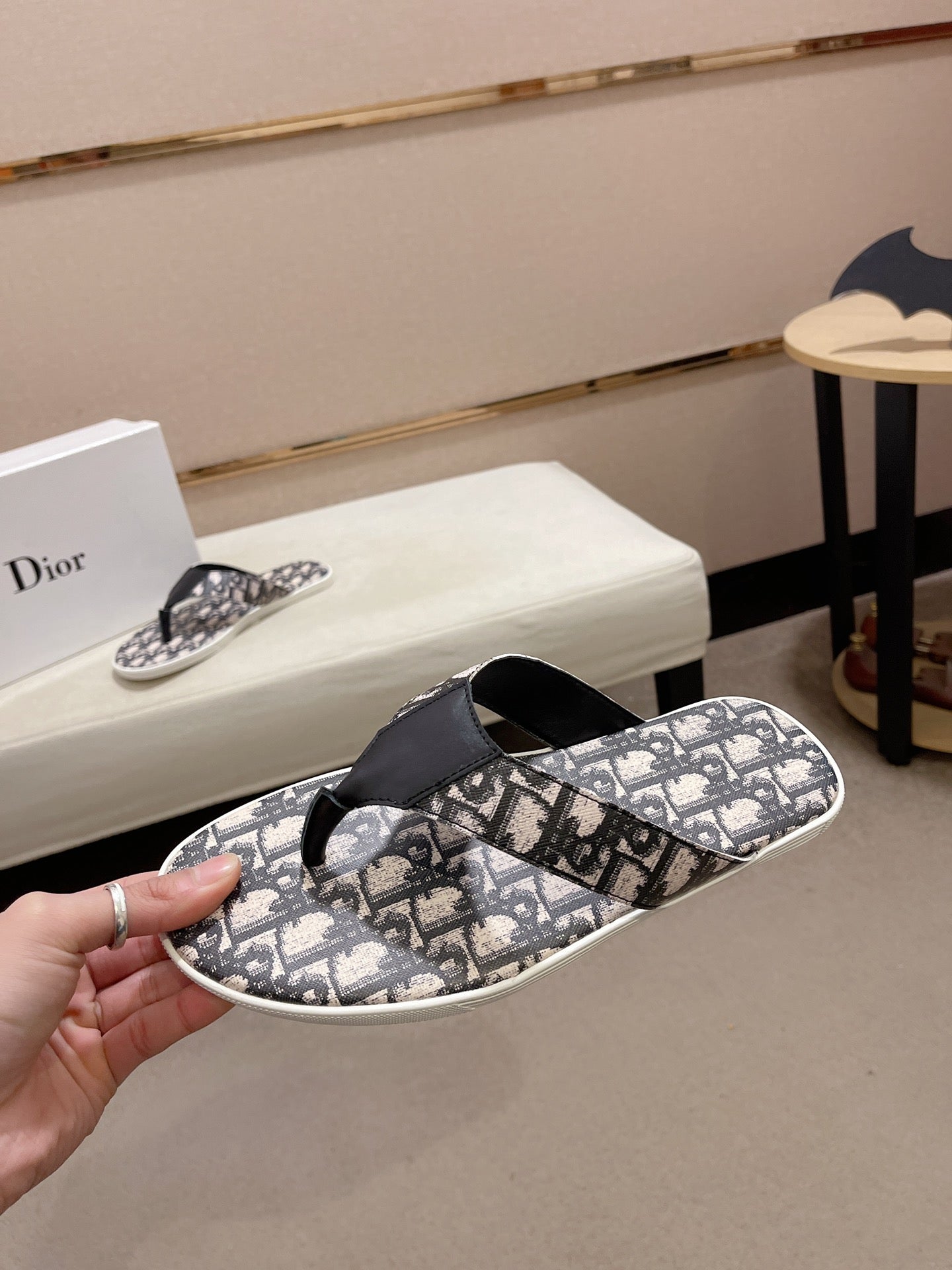 CD ALIAS THONG BLACK AND BEIGE JACQUARD