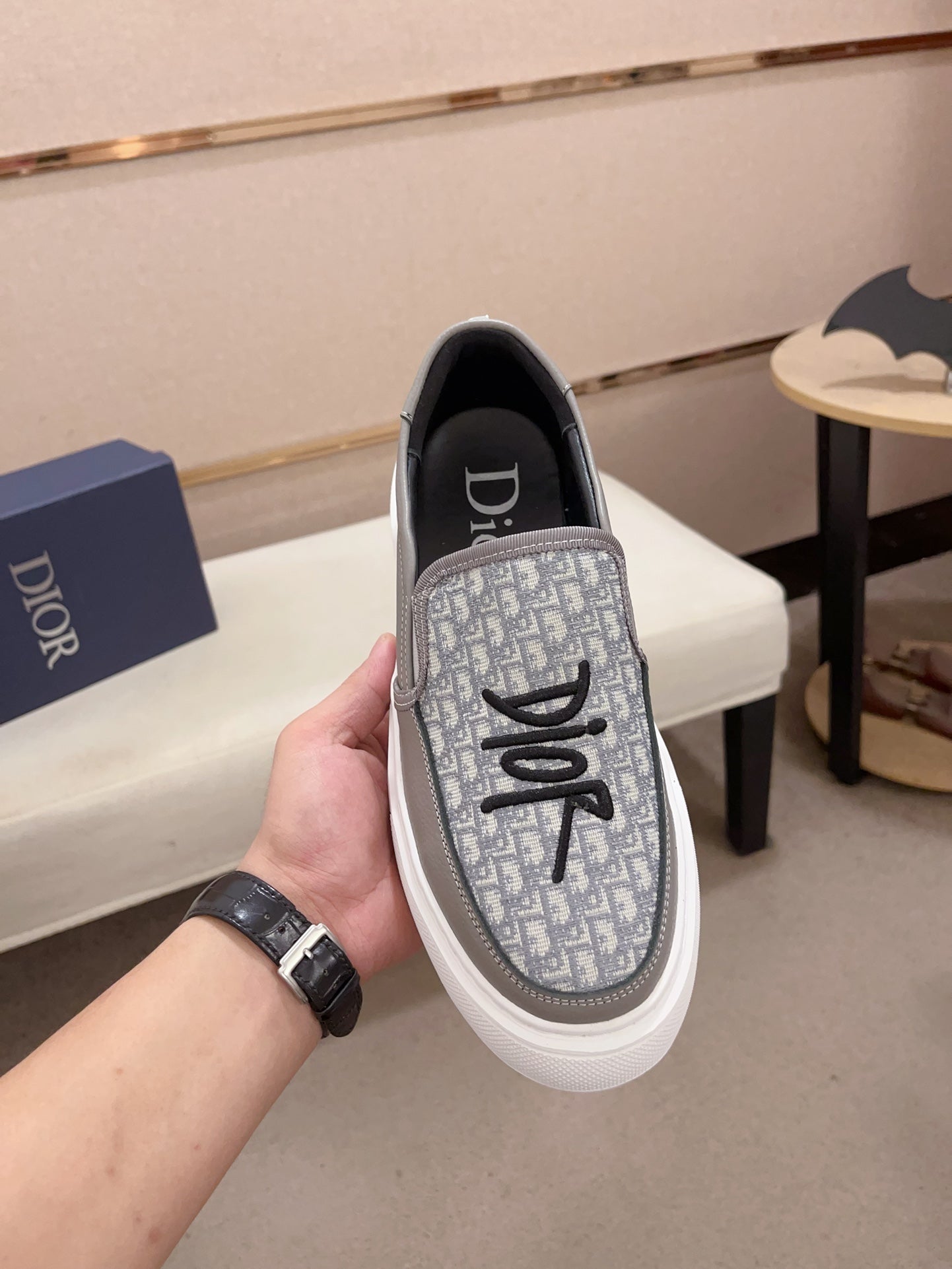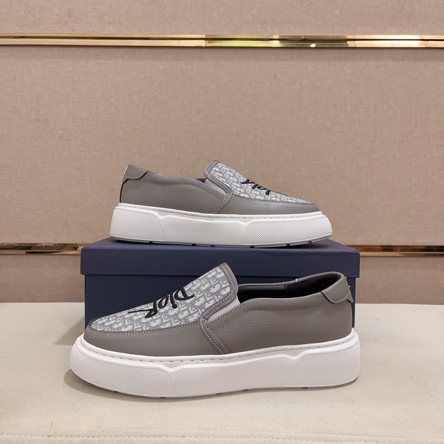 CD B23 SLIP ON GRAY CALFSKIN AND JACQUARD