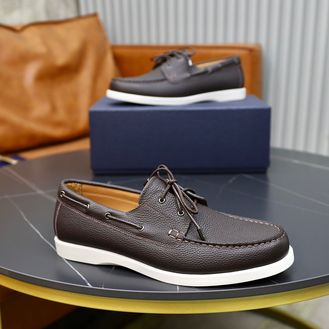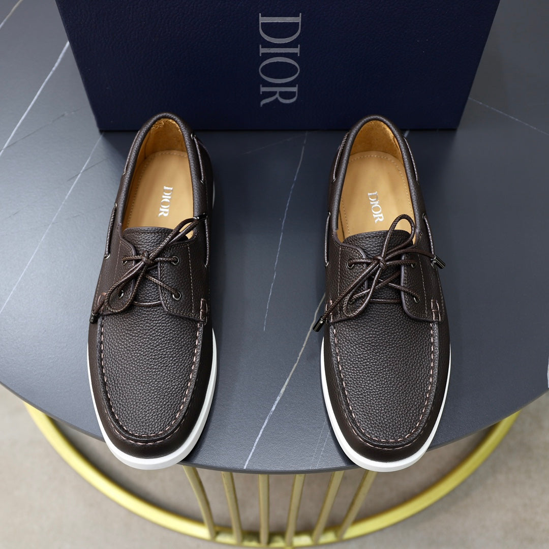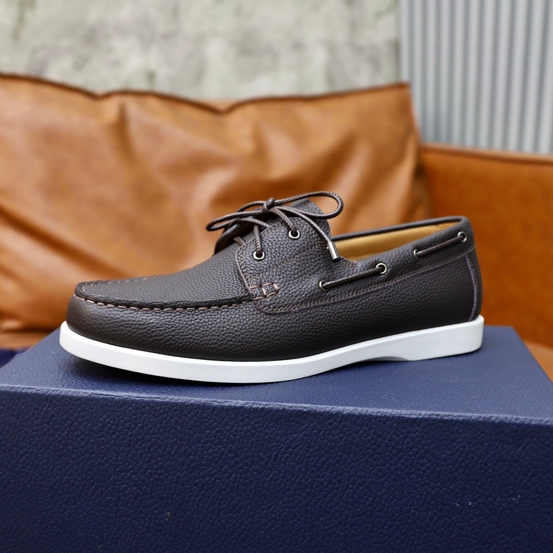 CD GRANVILLE BOAT SHOE DARK BROWN GRAINED CALFSKIN