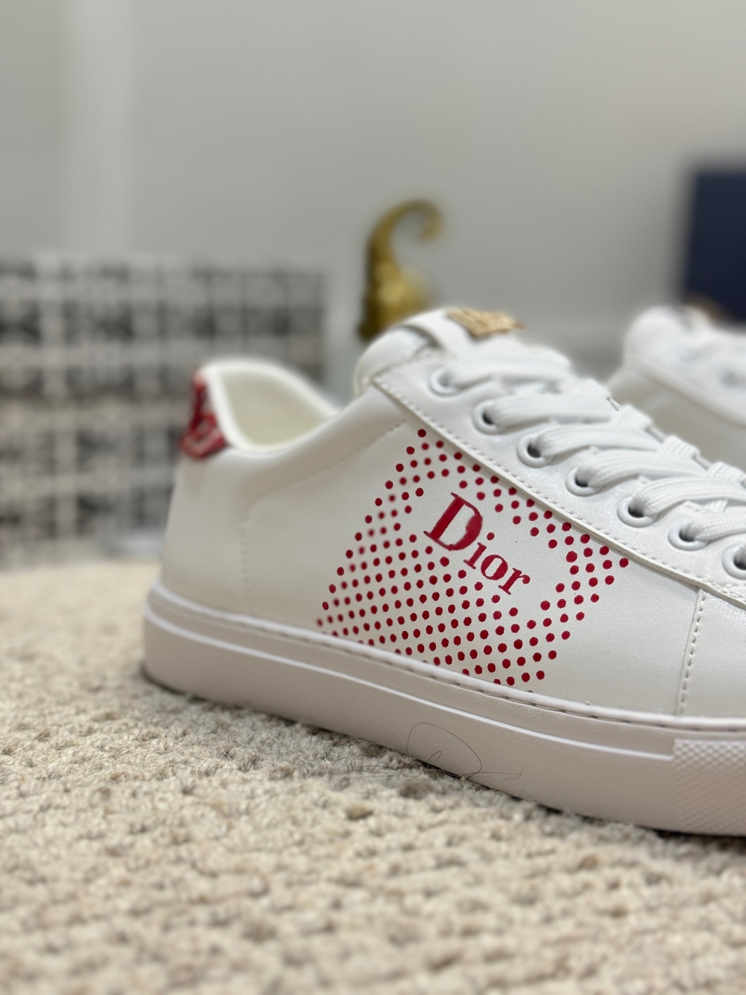 CD LOW TOP BASIC SNEAKER WHITE AND RED CALFSKIN