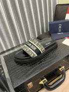 CD SLIDE LETTER SLIPPER BLACK AND SAGE CALFSKIN