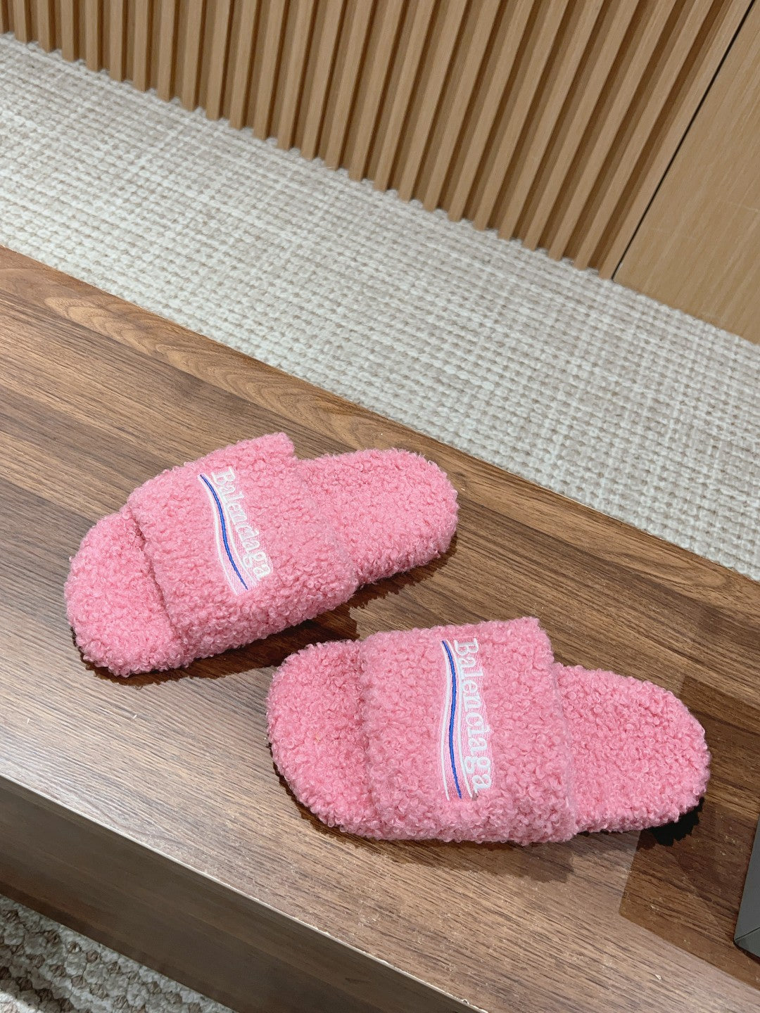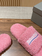 FURRY SLIDES IN PINK CURLY SHEARLING