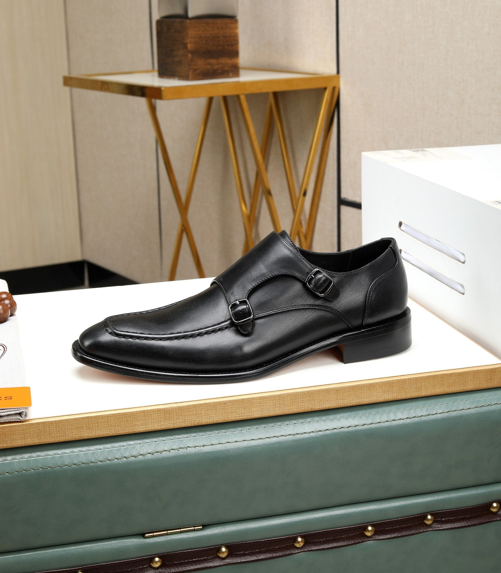 HM DOUBLE MONK STRAP BLACK CALFSKIN