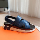HM ELECTRIC CROCODILE MOTIF SANDAL AZURE CALFSKIN