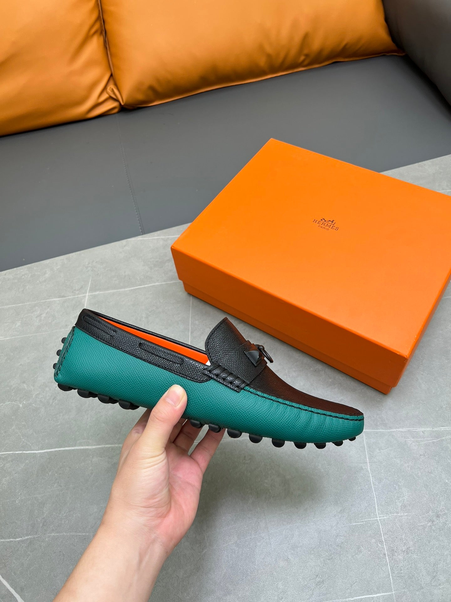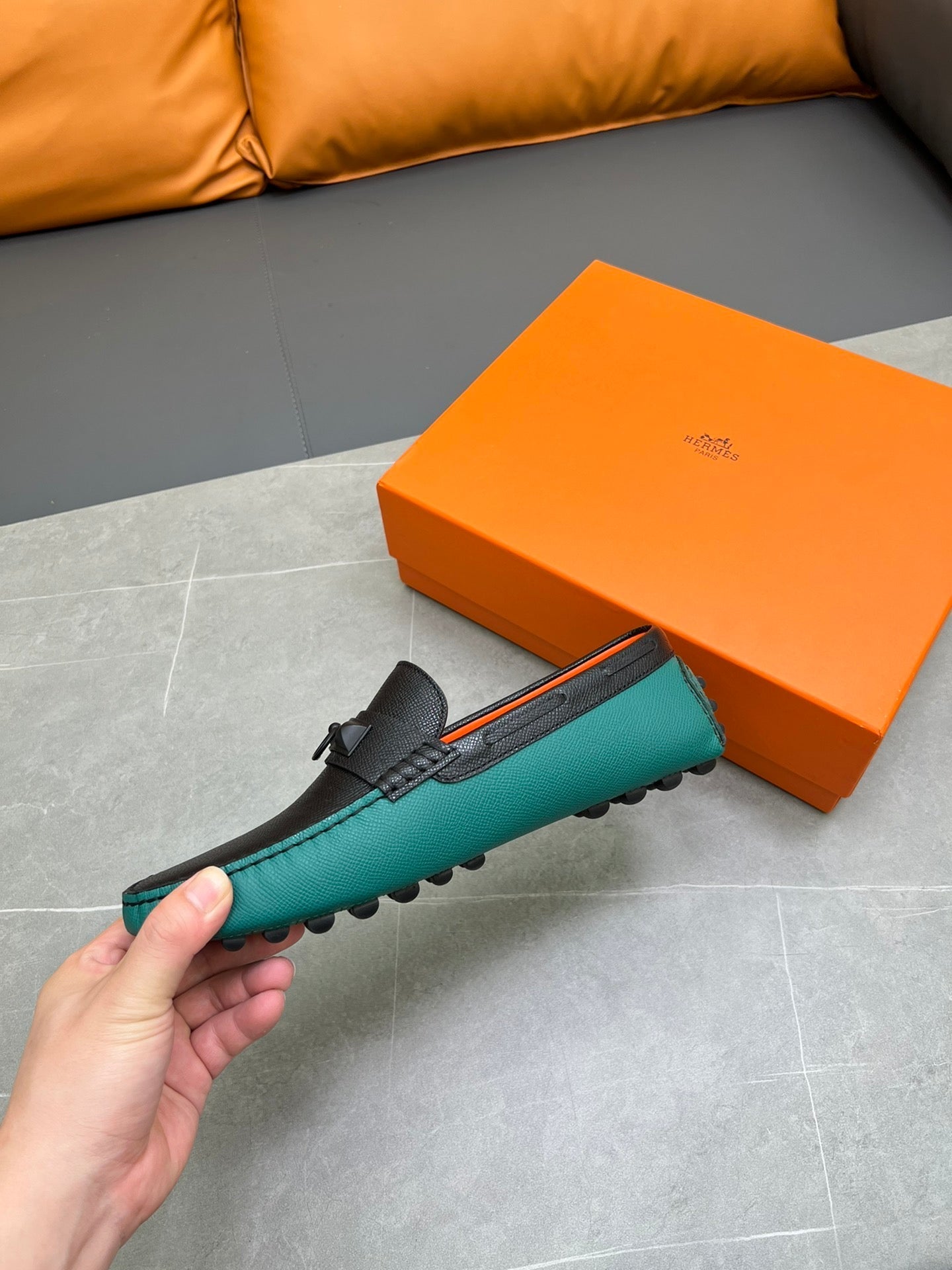 HM IRVING LOAFER BLACK AND PINE GREEN CALFSKIN