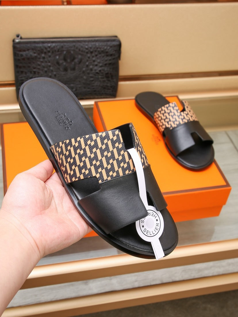 HM IZMIR SANDAL BLACK AND PEACHY CALFSKIN