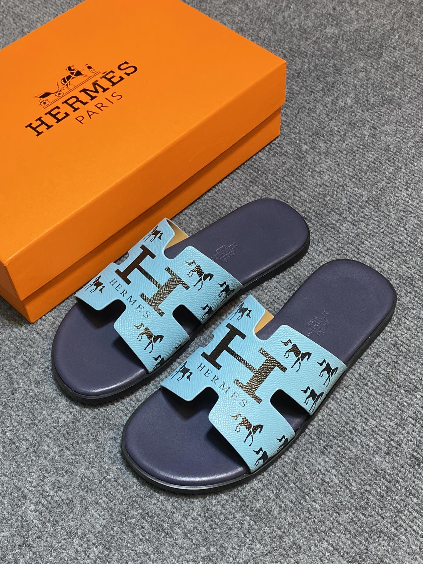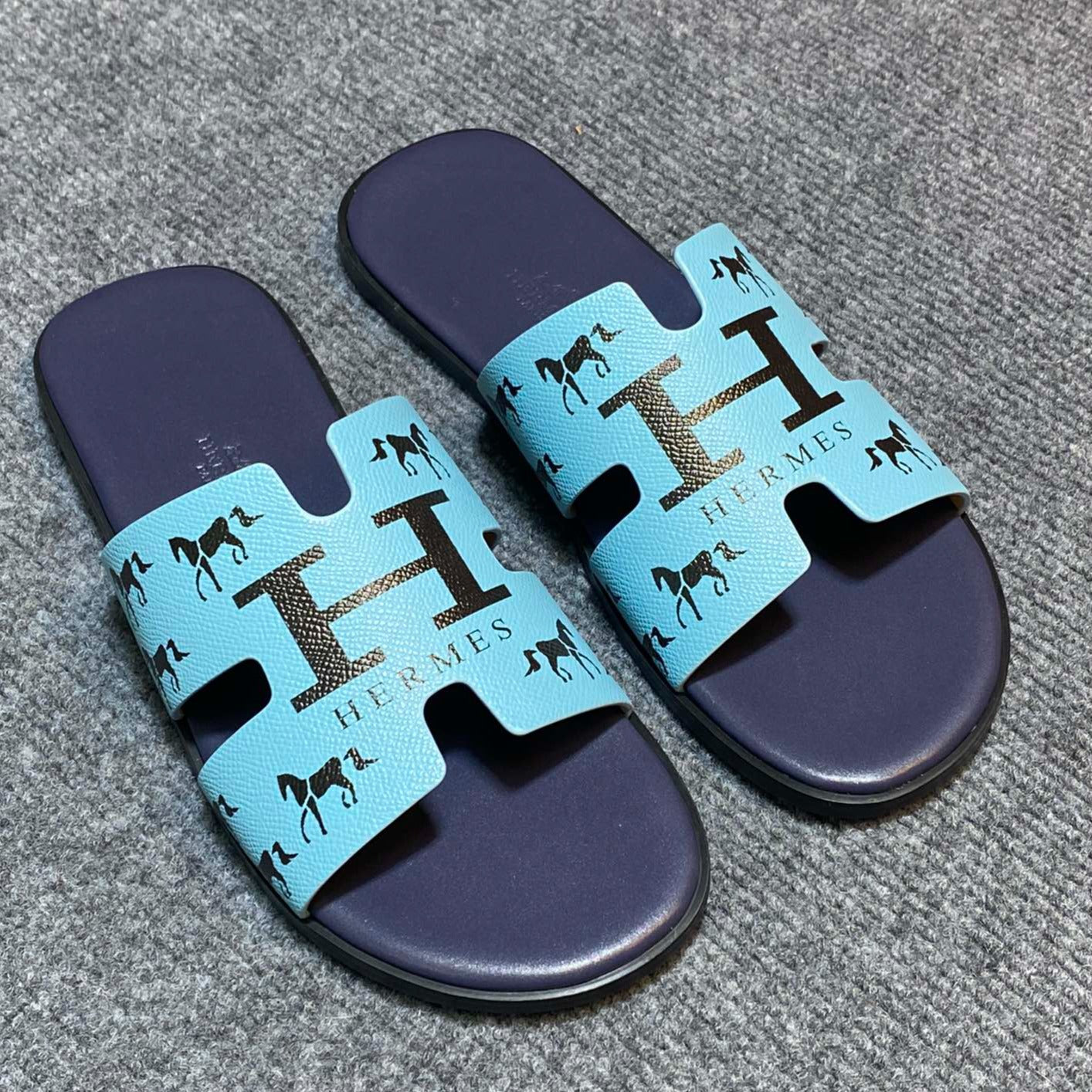 HM IZMIR SANDAL INDIGO AND SKY CALFSKIN WITH ICON