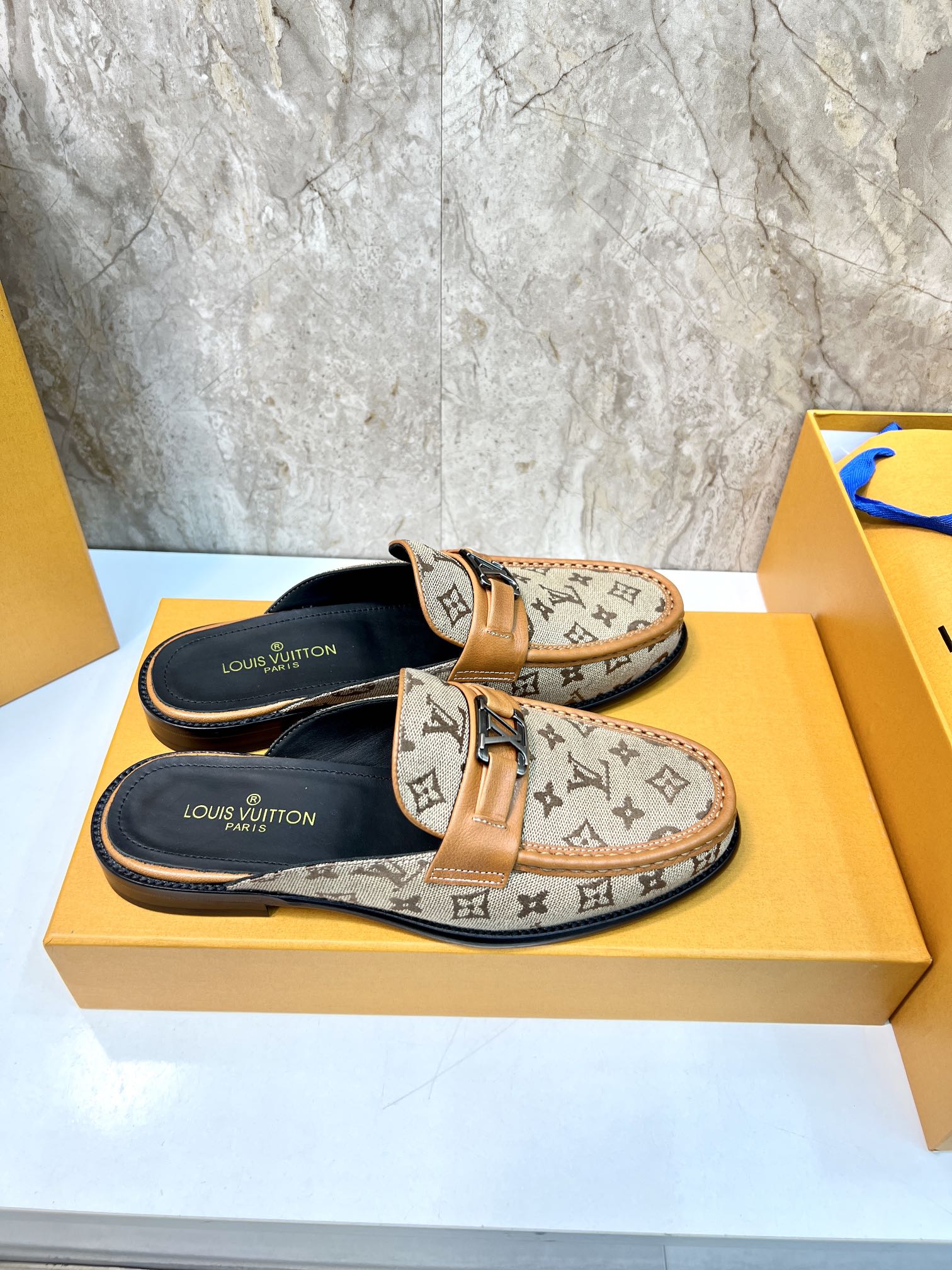 LV EASY MULE BEIGE CREAM MONOGRAM CANVAS