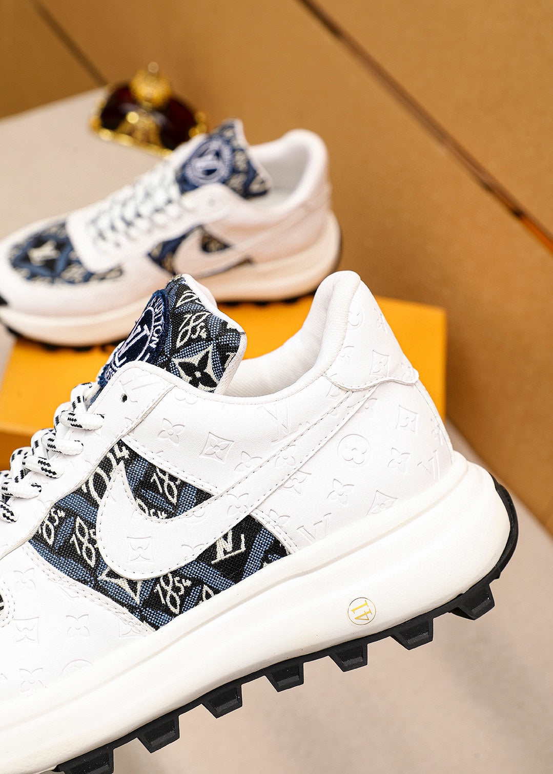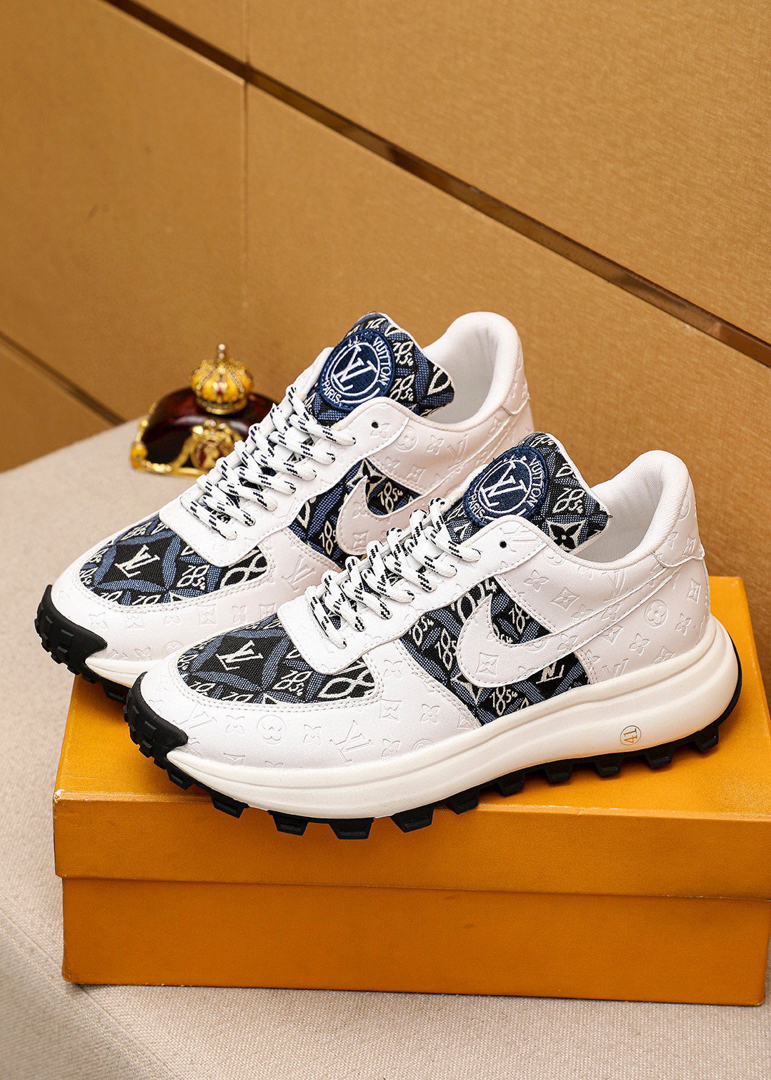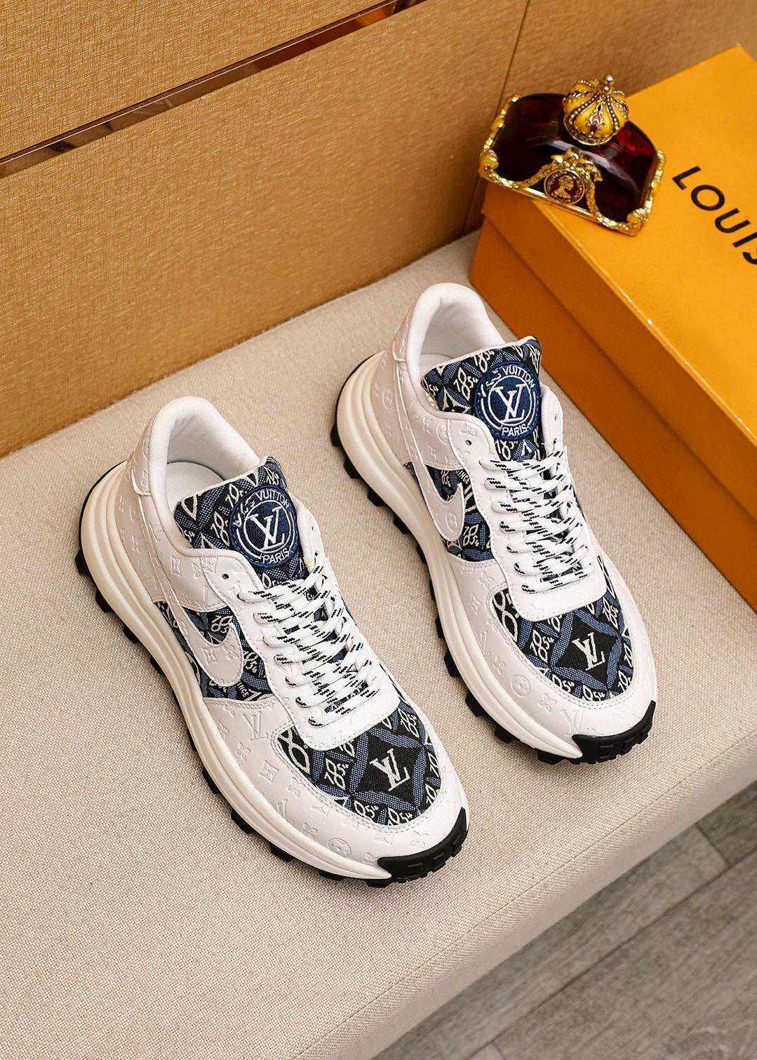 LV HIGH-END CLASSIC WHITE BLACK AND WHITE SUEDE MEN'S SHOES