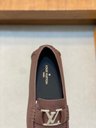 LV LOAFER IN CHOCOLATE BROWN WRINKLE CALFSKIN WITH SILVER LOGO