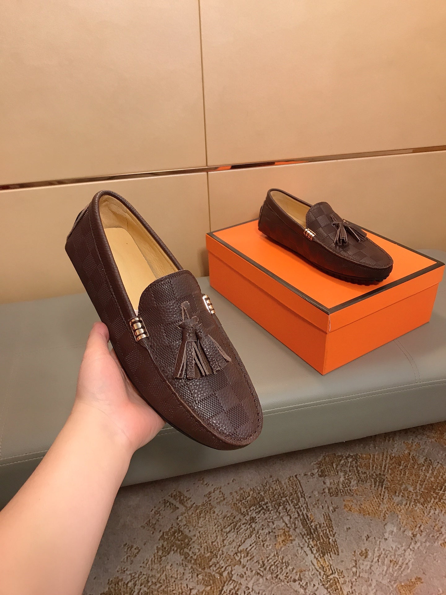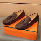 LV LOAFERS RUSSET BROWN DAMIER CALFSKIN WITH TASSEL