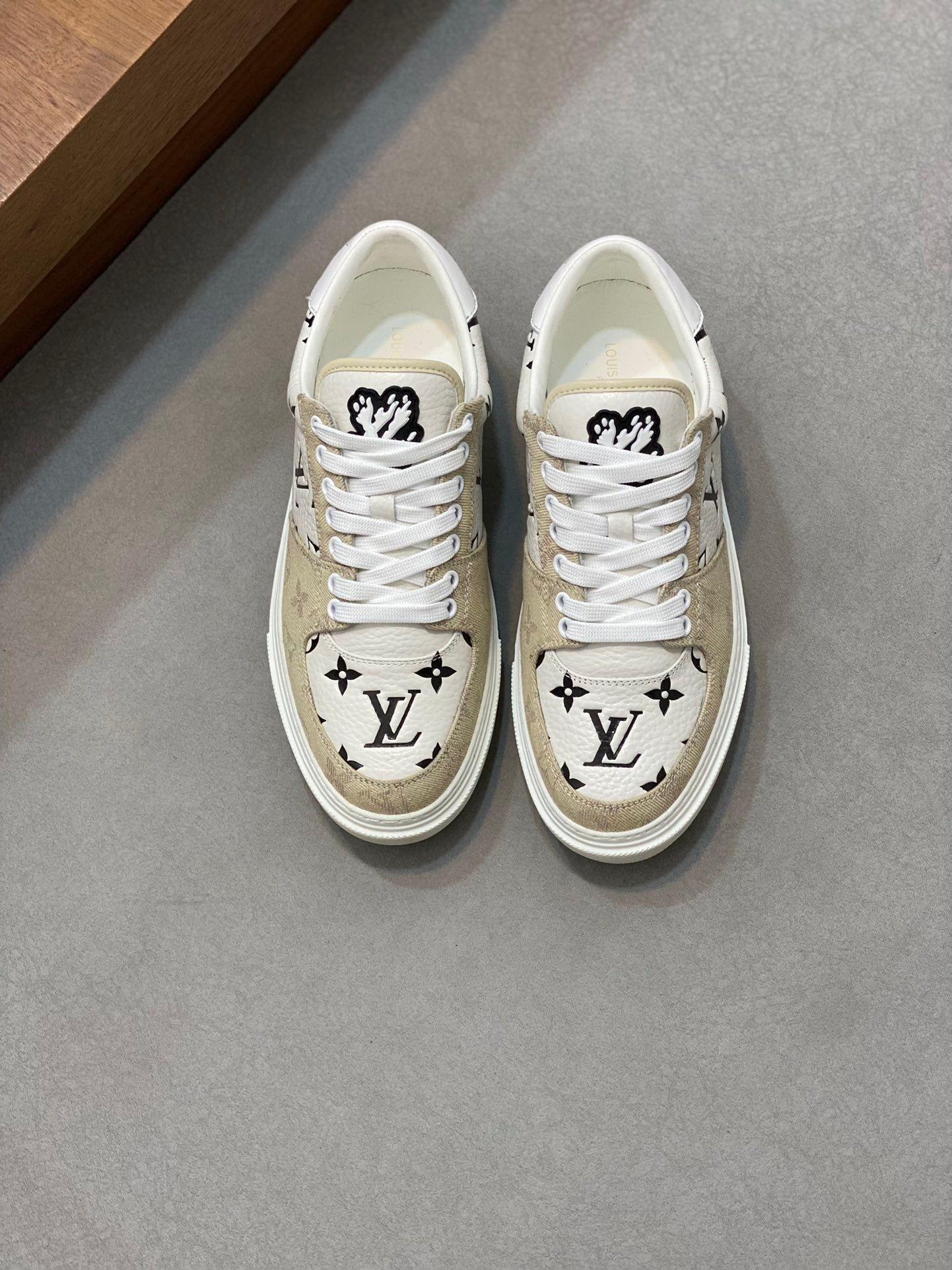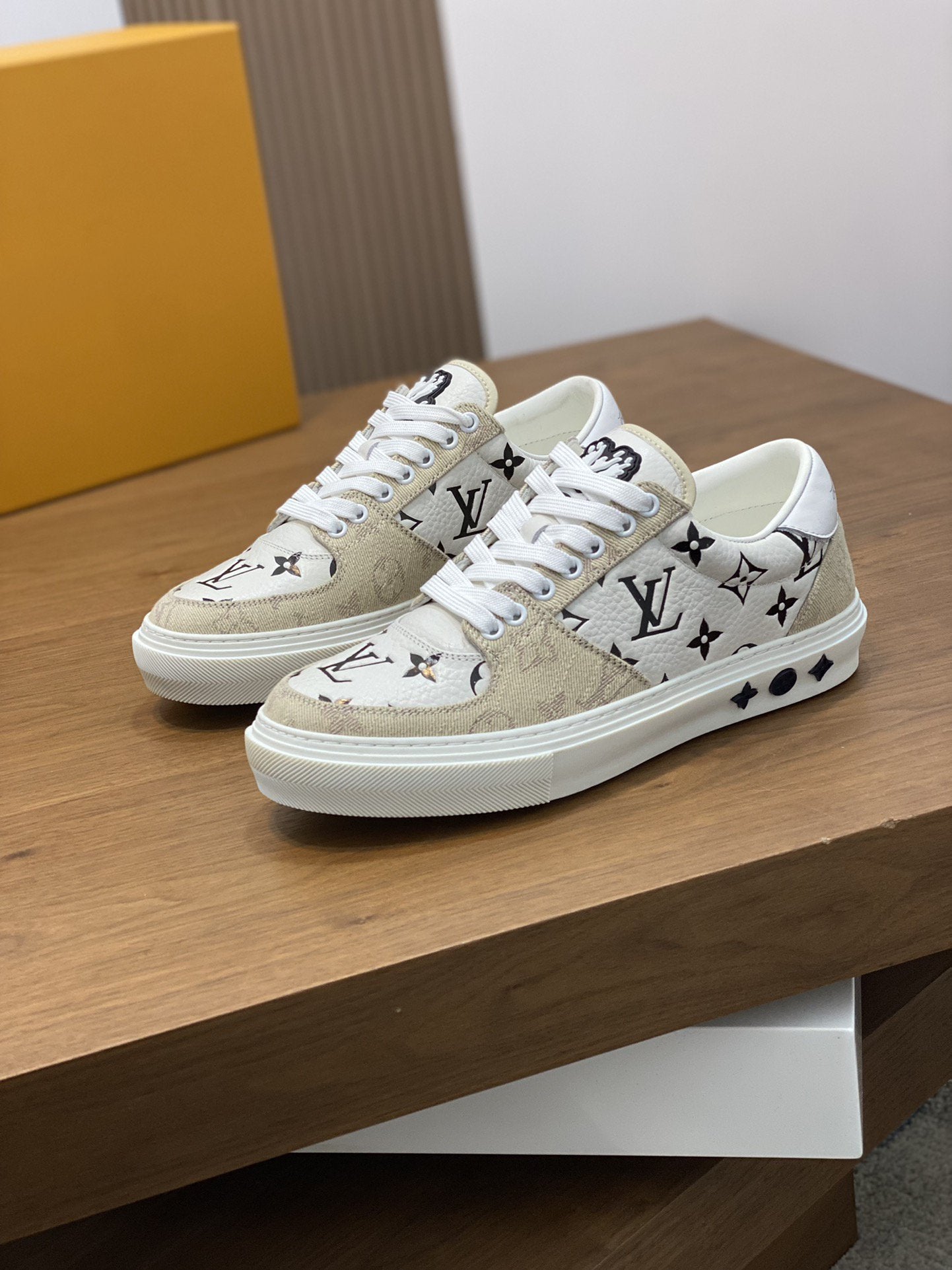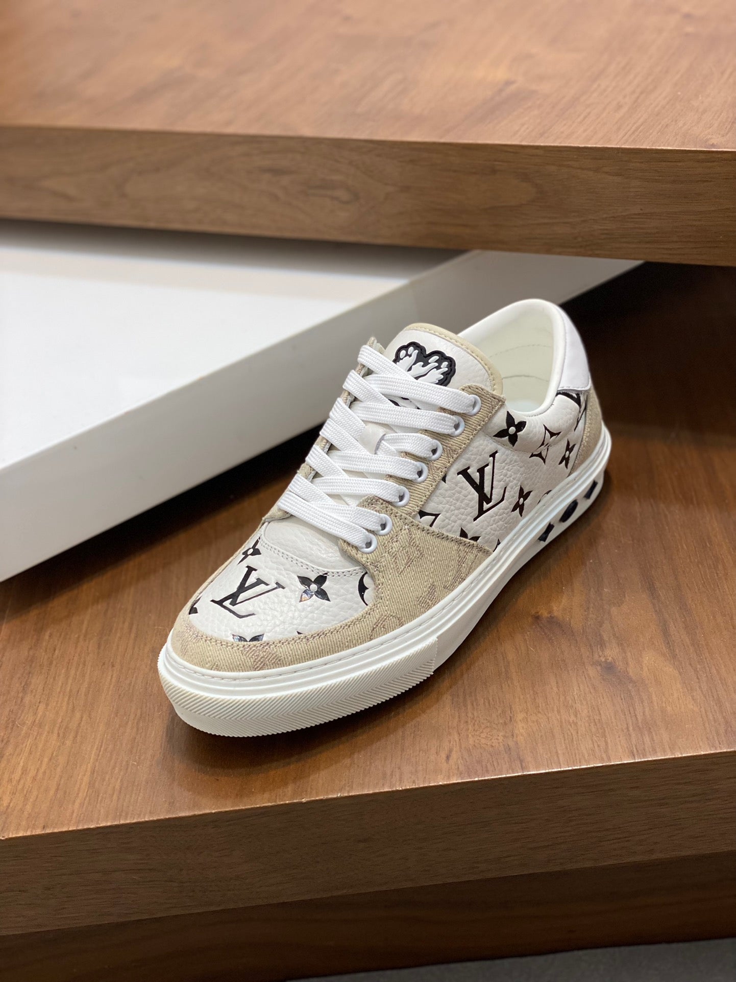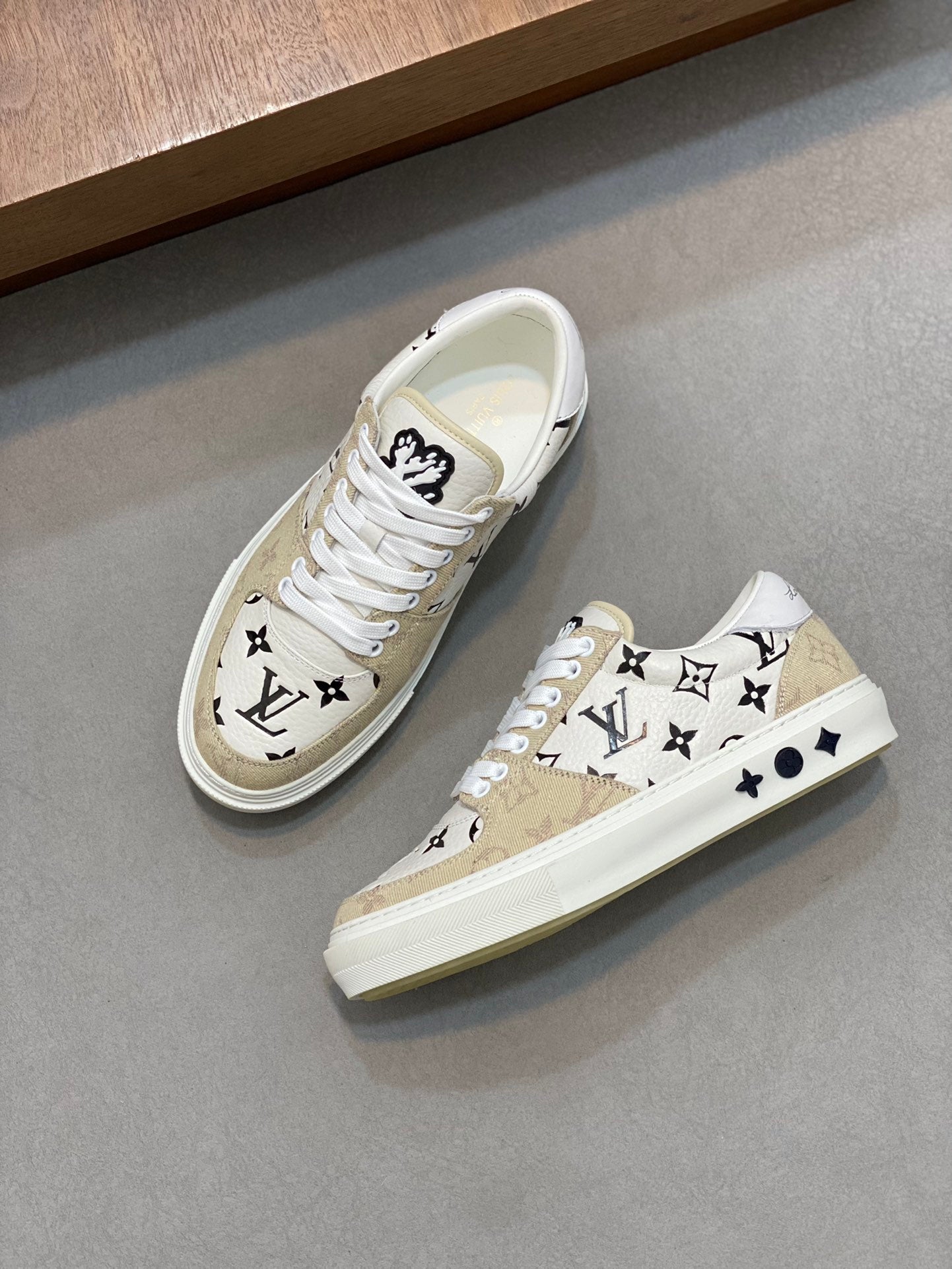 LV MONOGRAM BEIGE AND WHITE SNEAKERS