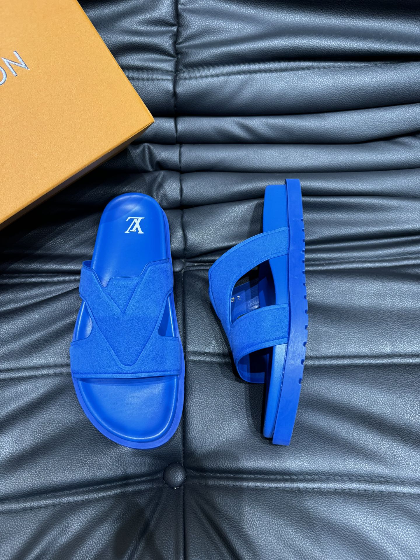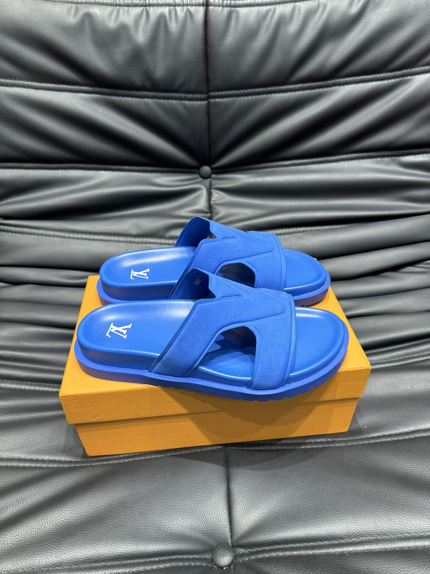 LV OASIS MULE IN COBALT BLUE SUEDE CALFSKIN