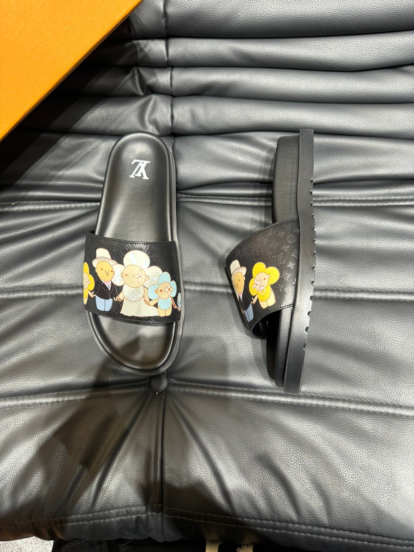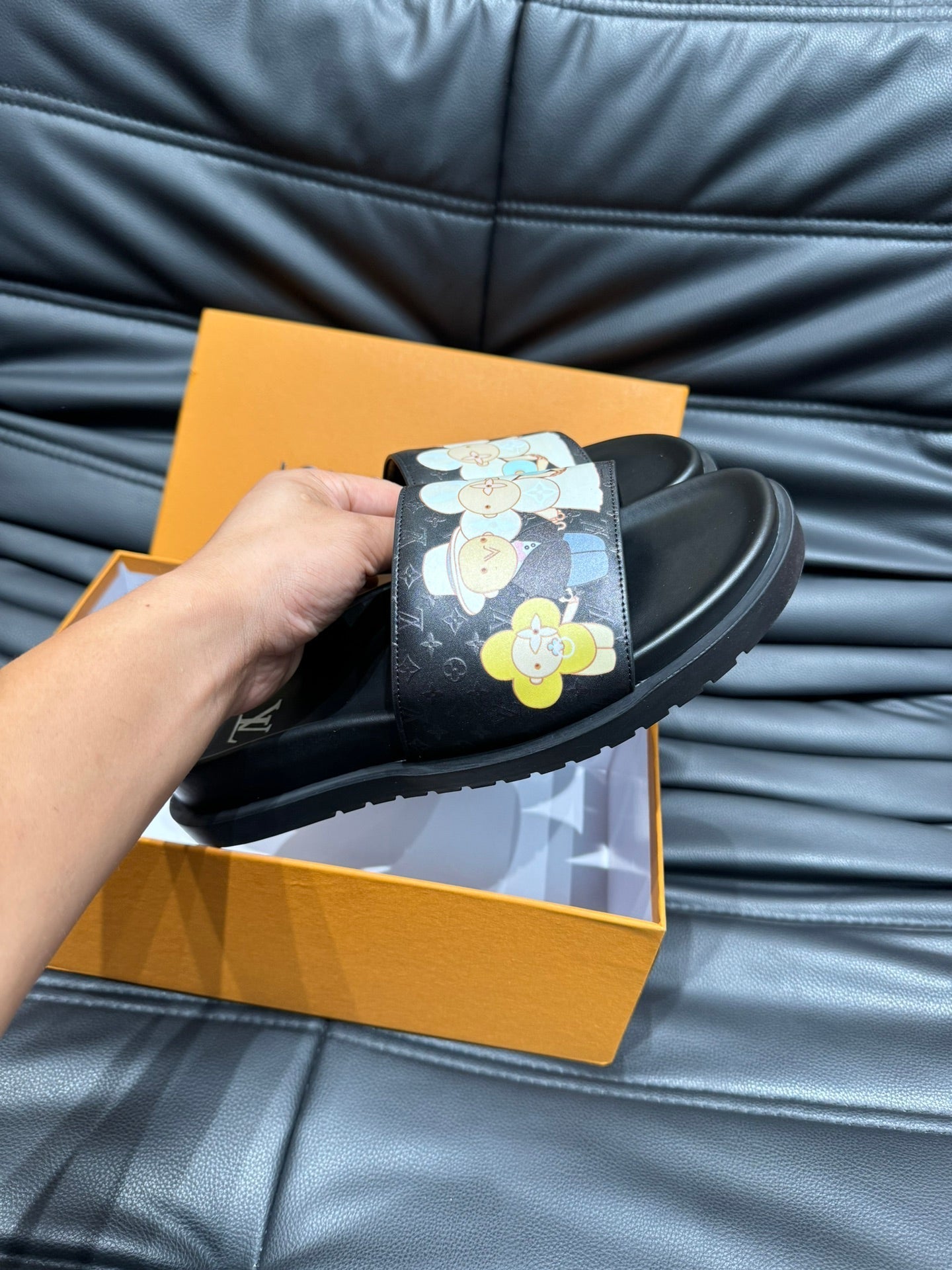 LV SLIPPERS IN BLACK MONOGRAM CALFSKIN