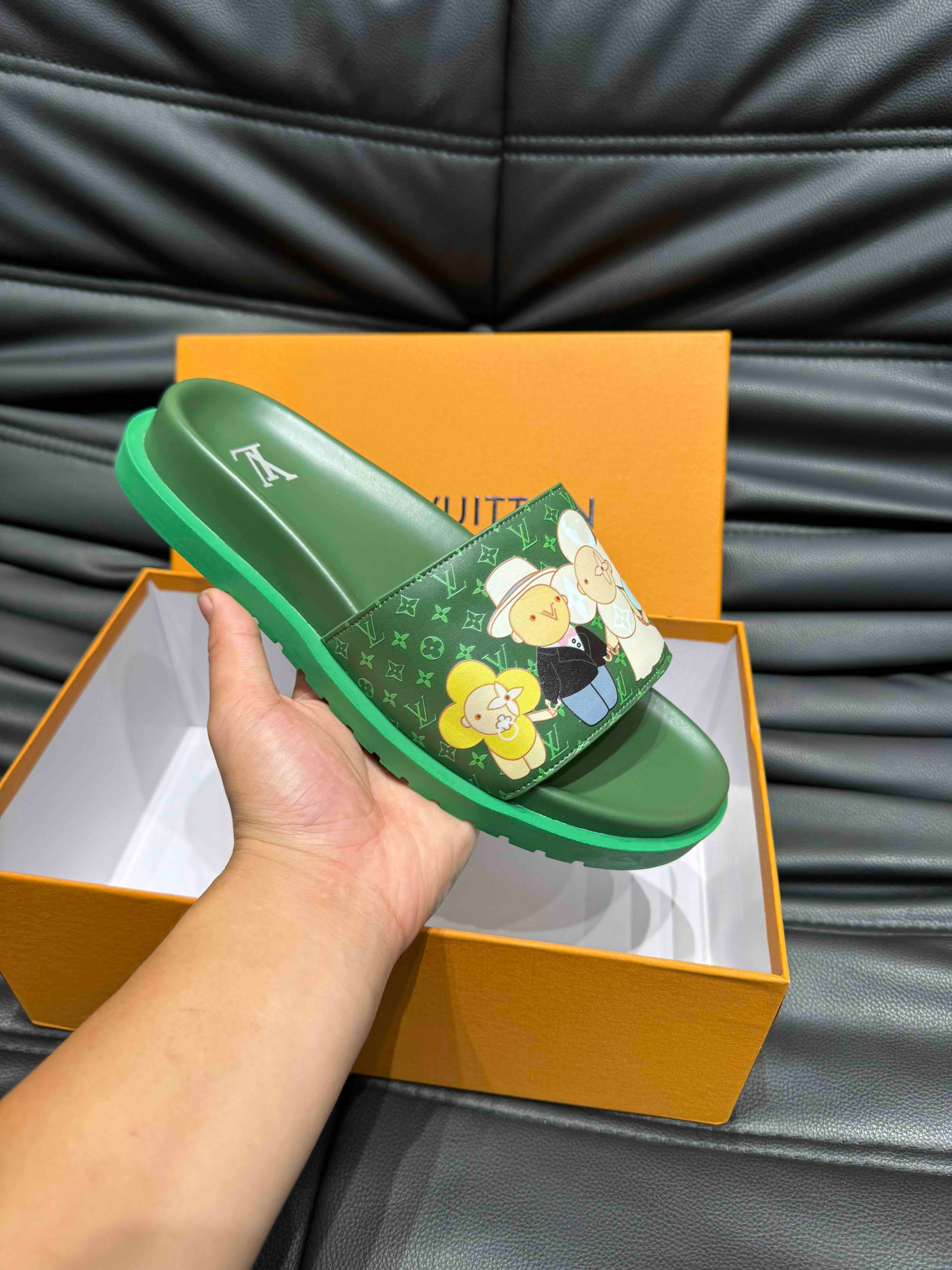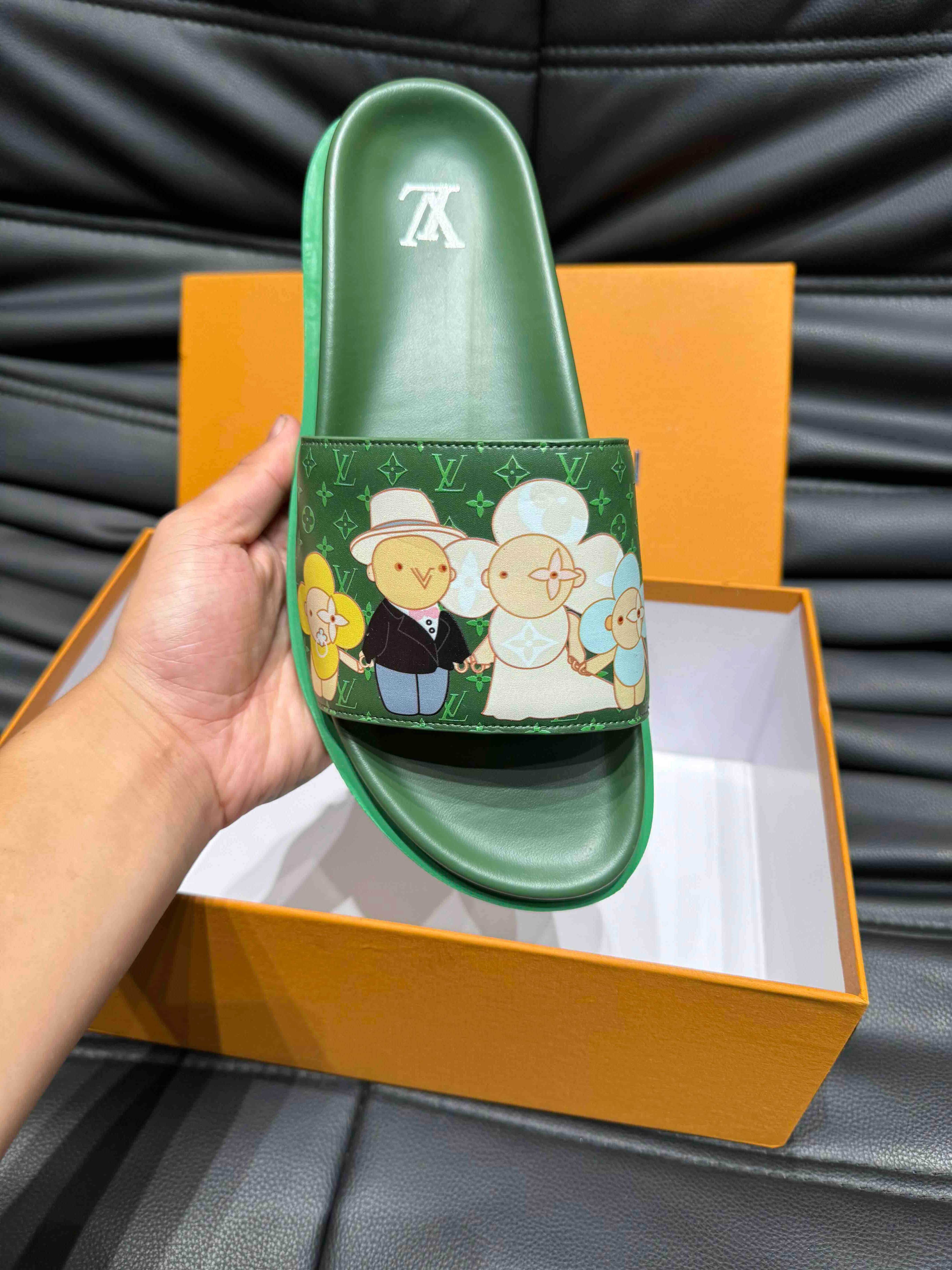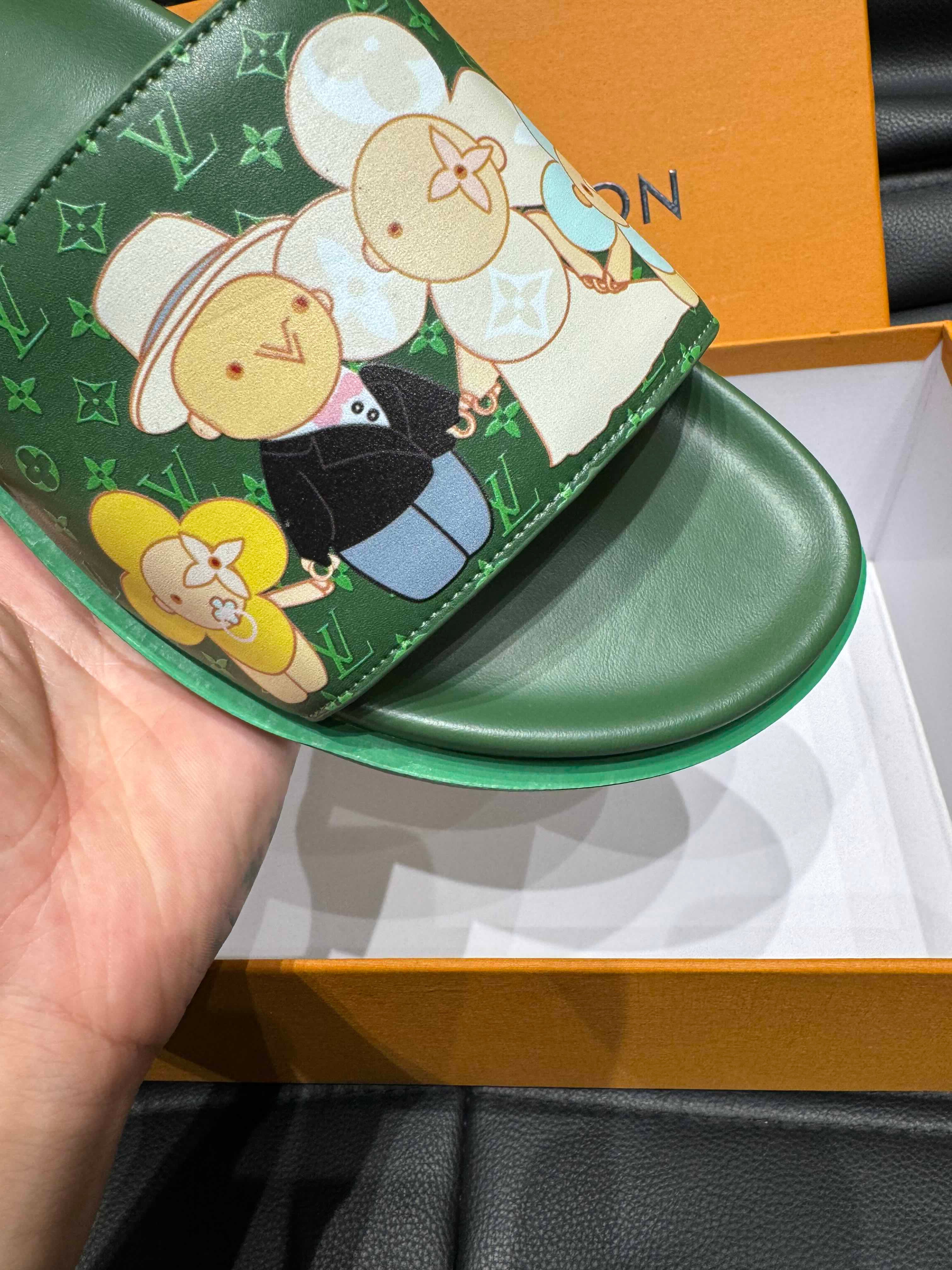 LV SLIPPERS IN SEA GREEN MONOGRAM CALFSKIN