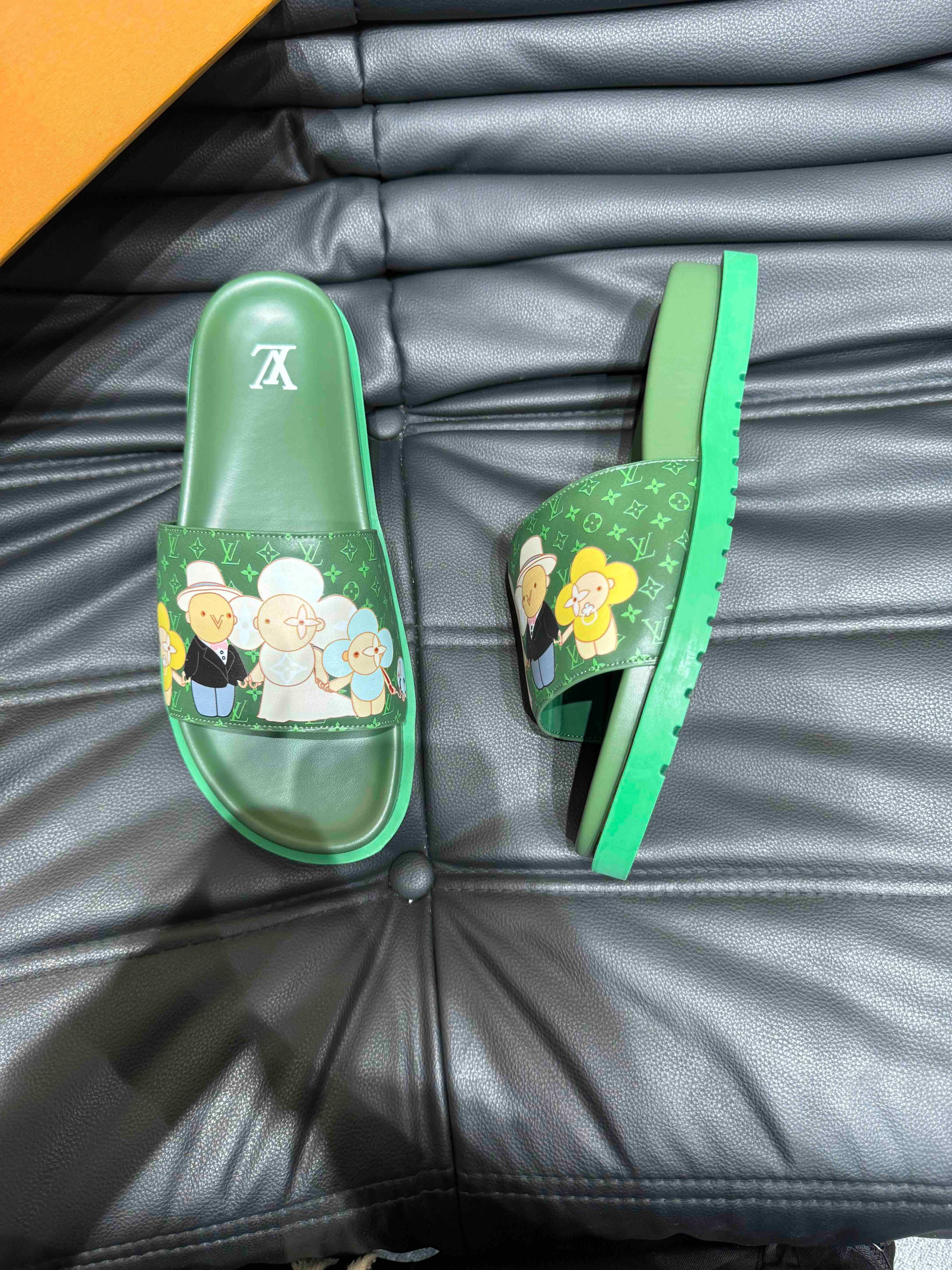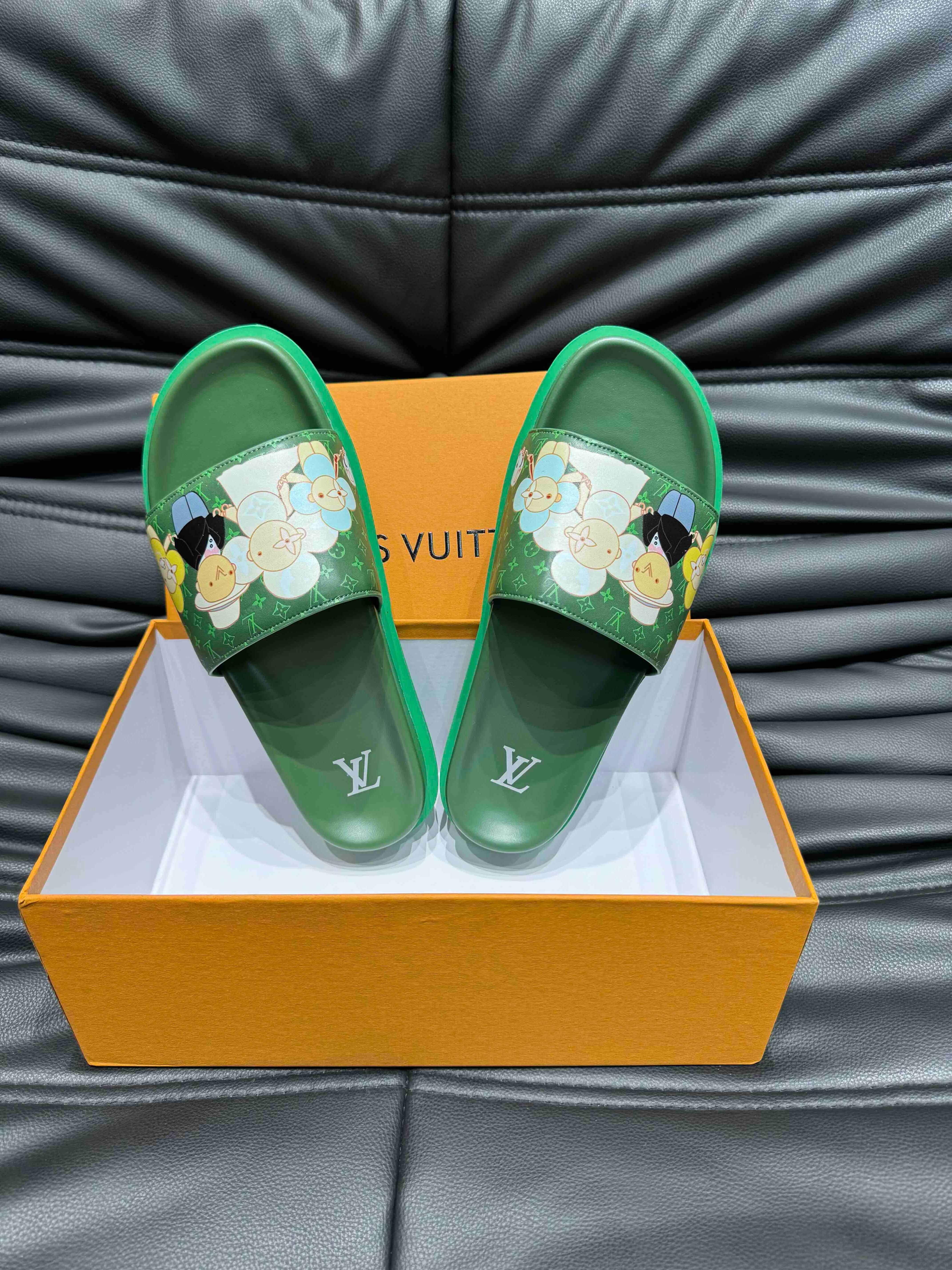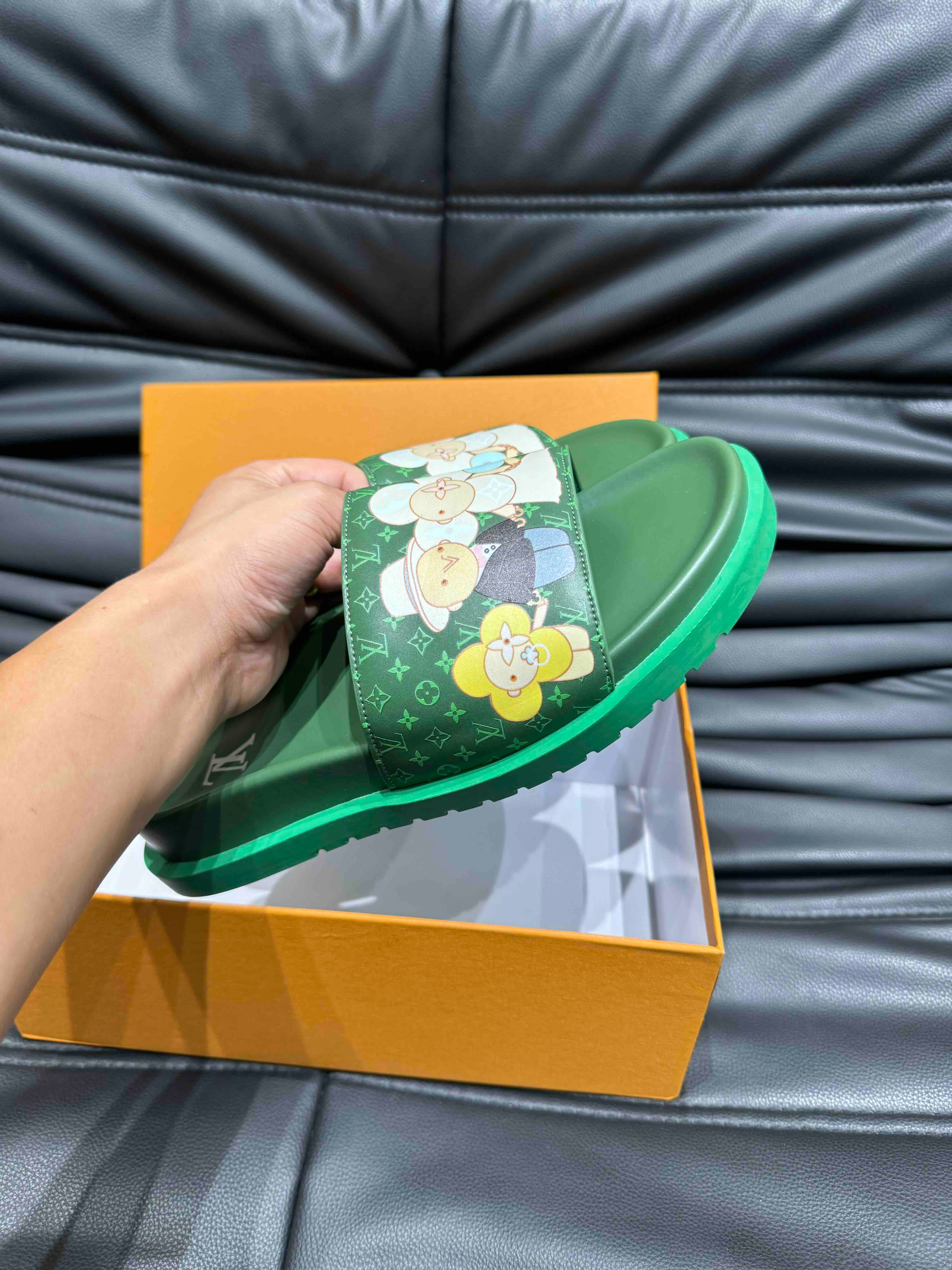 LV SLIPPERS IN SEA GREEN MONOGRAM CALFSKIN