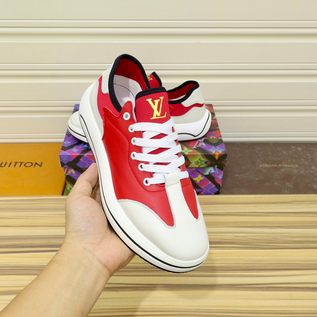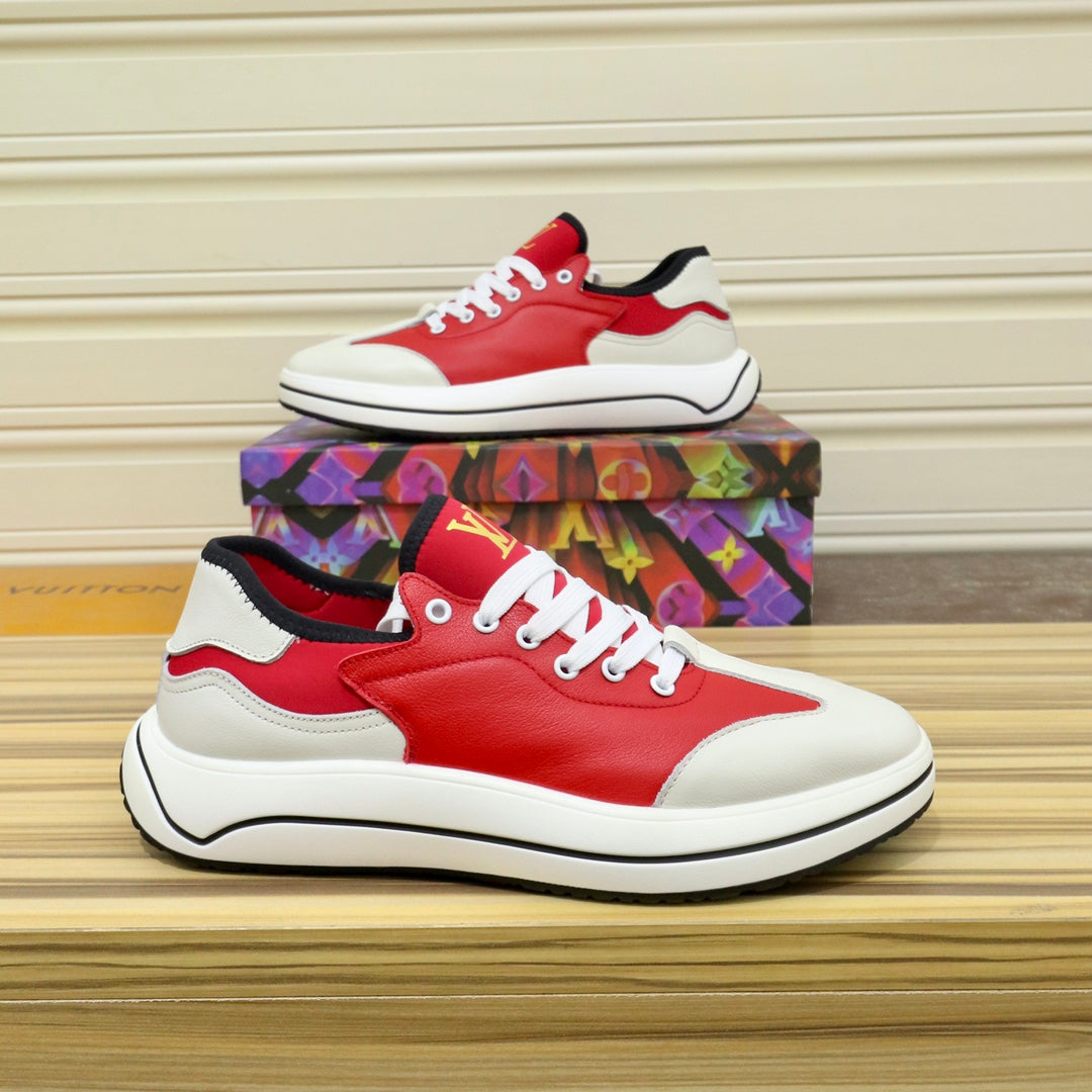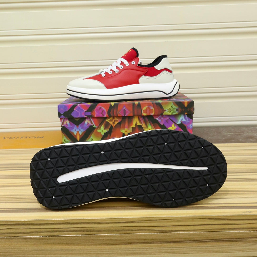 LV SNEAKER CHERRY RED MIX WHITE IVORY CALFSKIN