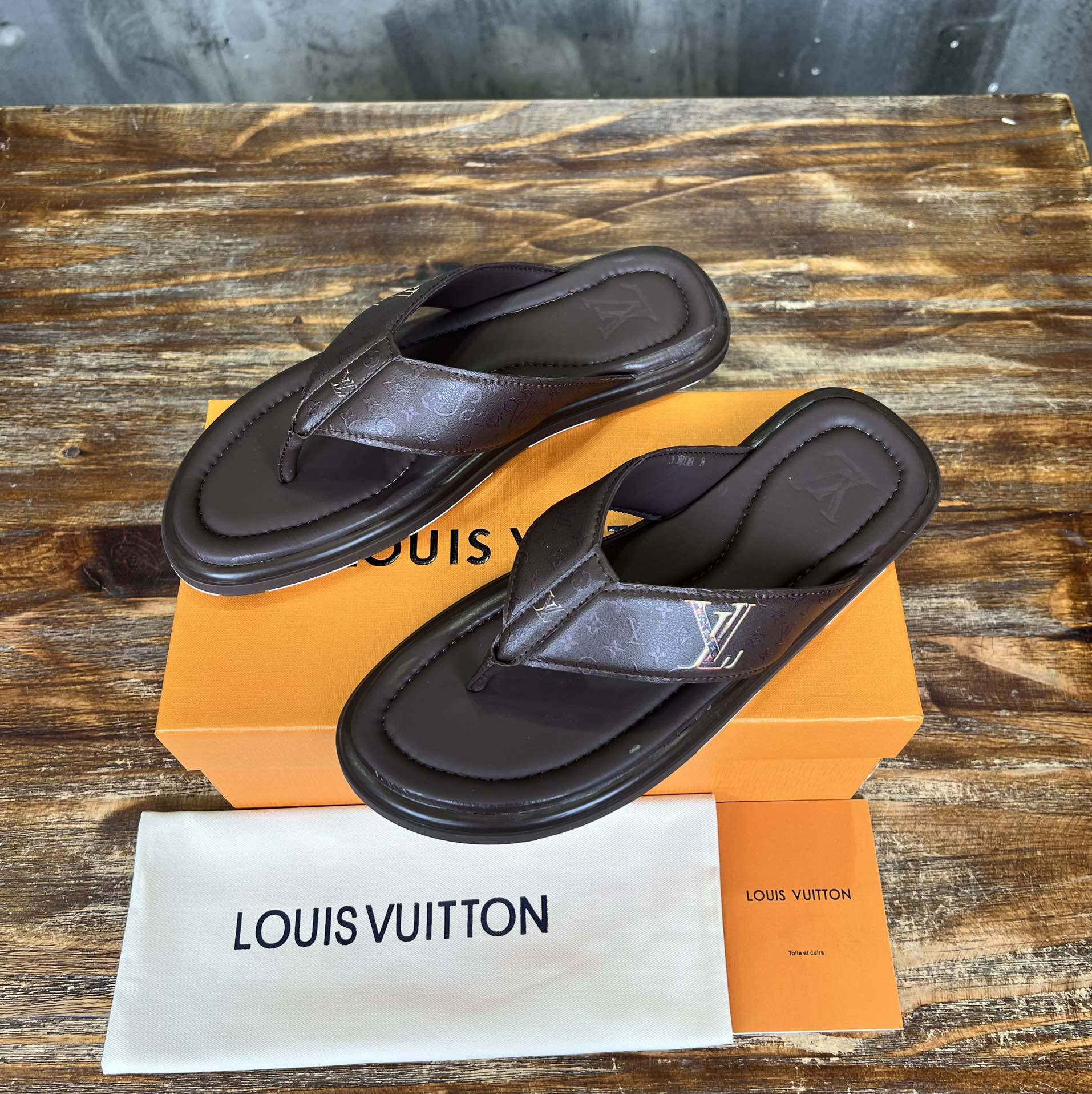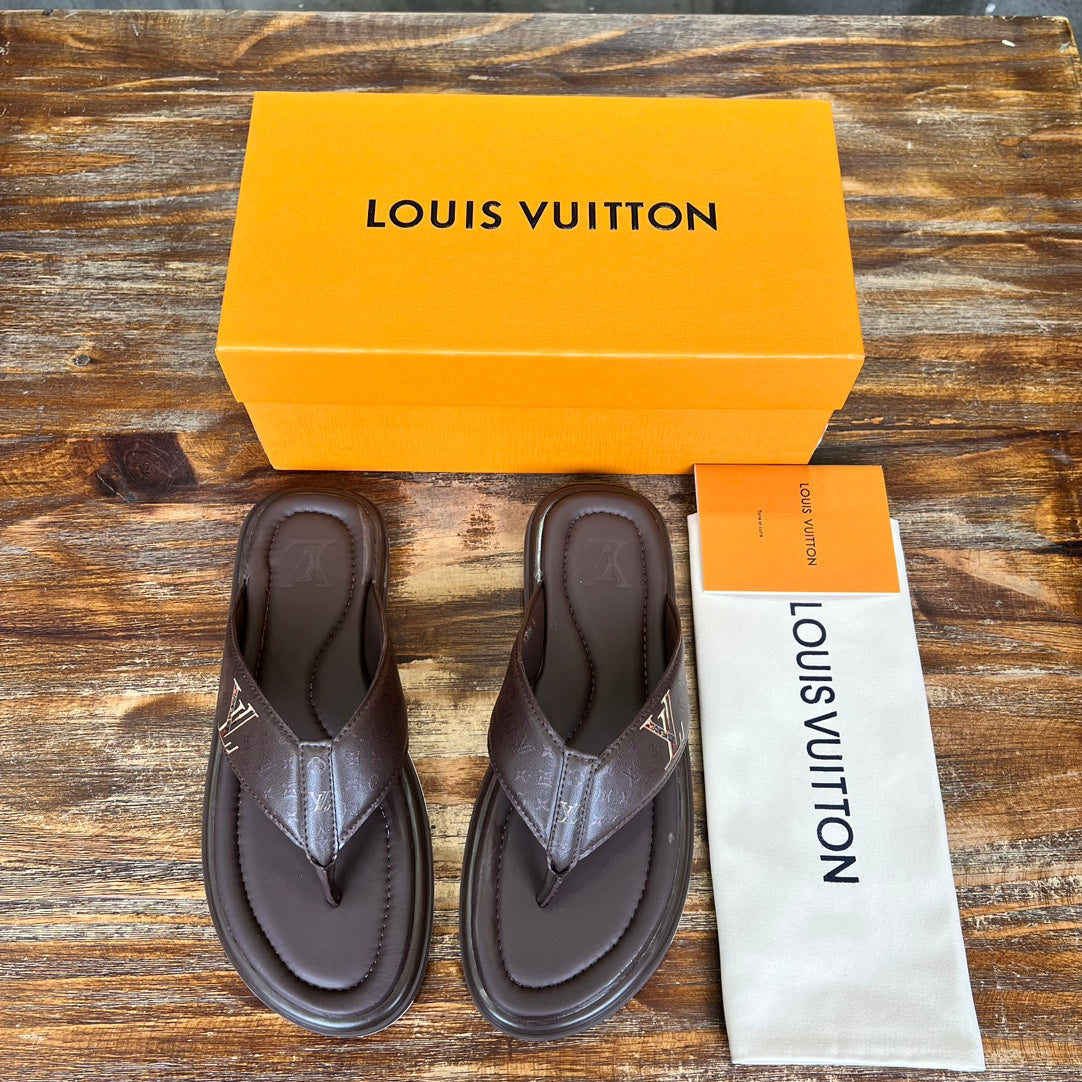 LV THONG SLIPPER IN CHOCOLATE BROWN MONOGRAM CALFSKIN