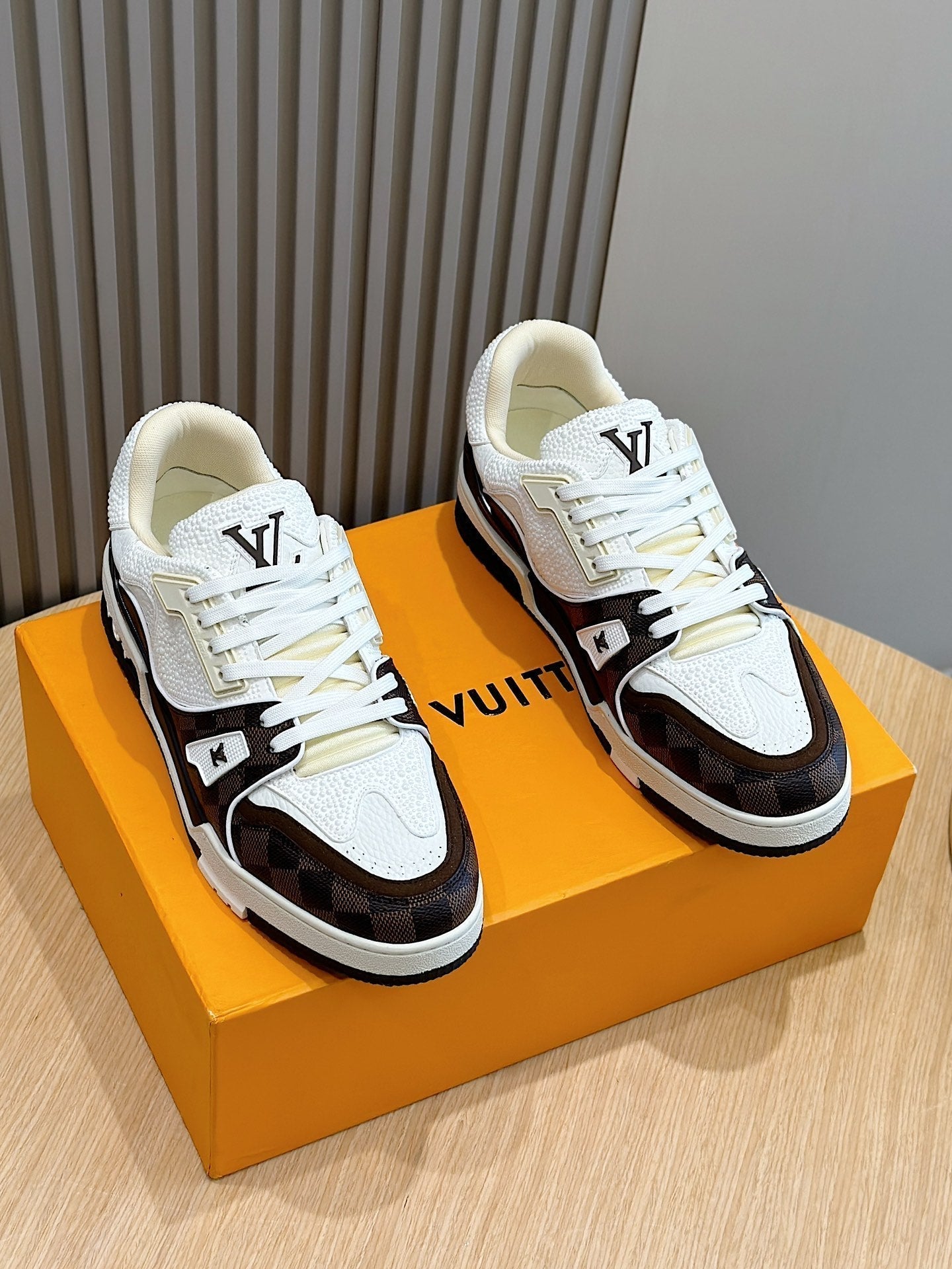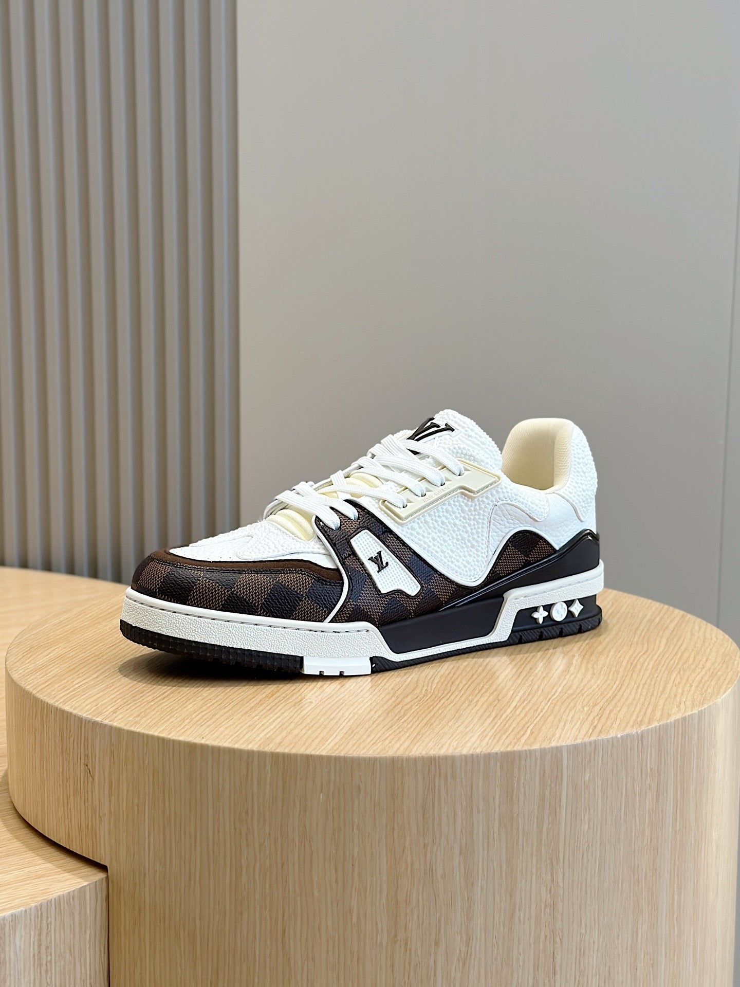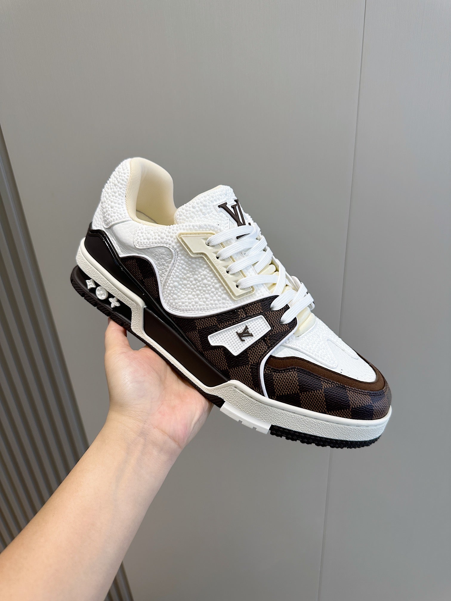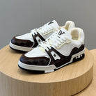 LV TRAINER CHOCOLATE BROWN DAMIER MIX WHITE GRAINED CALFSKIN