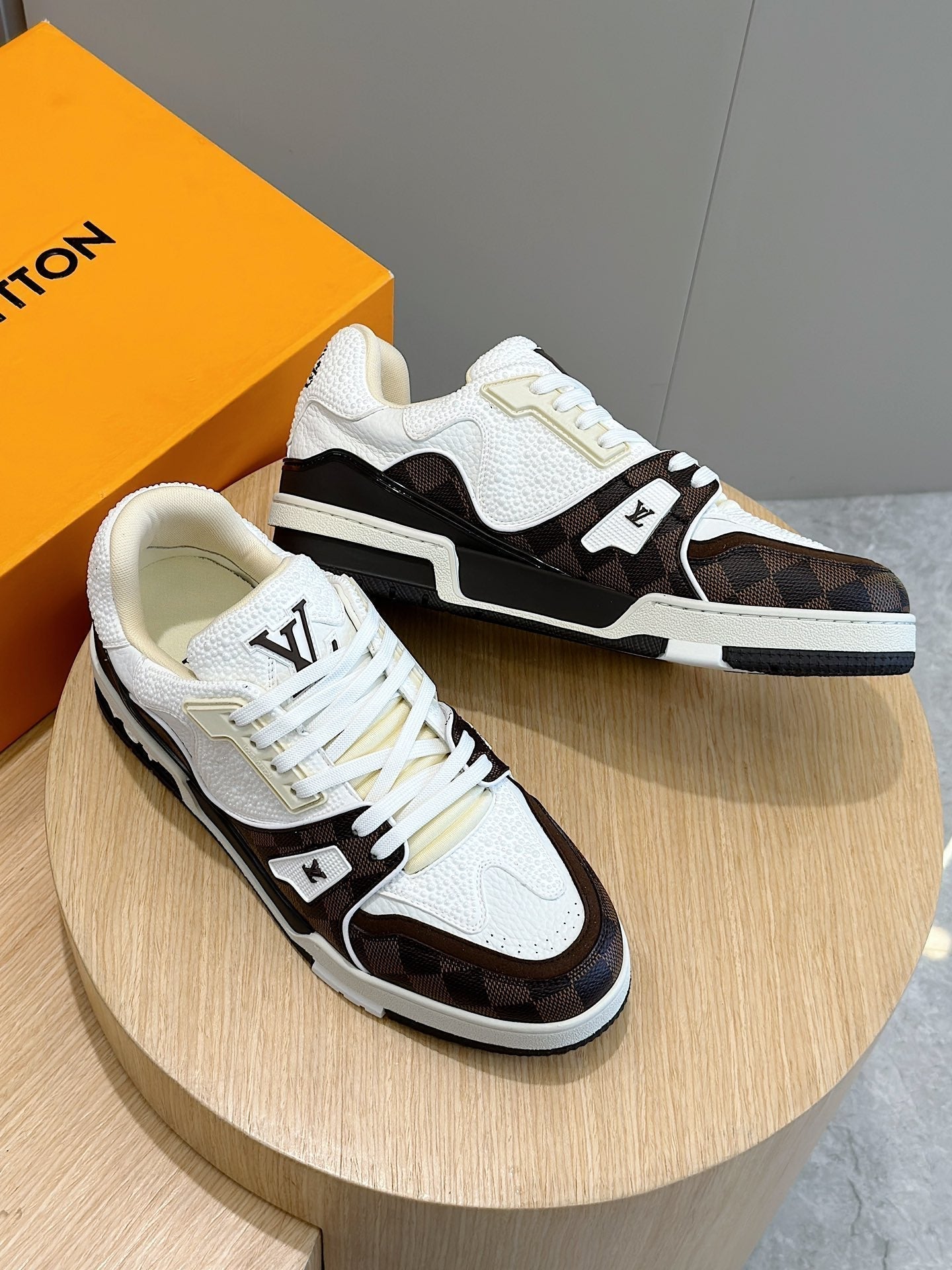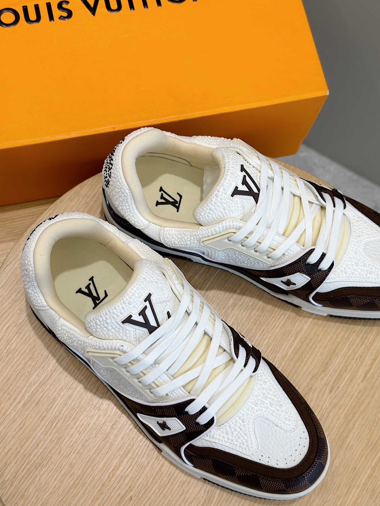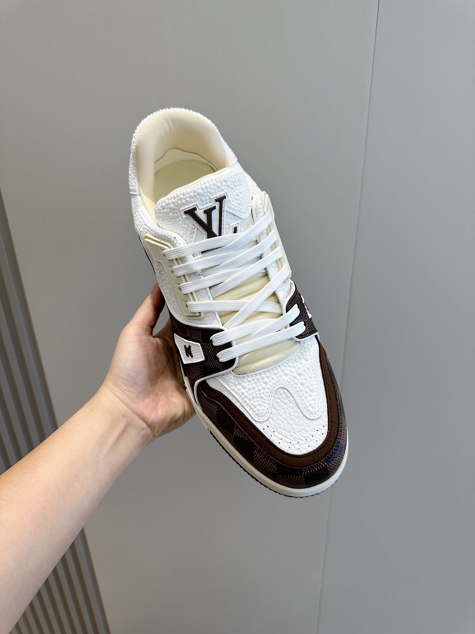 LV TRAINER CHOCOLATE BROWN DAMIER MIX WHITE GRAINED CALFSKIN