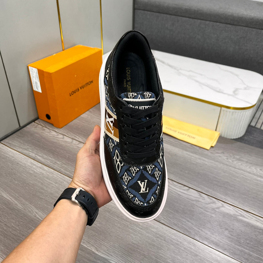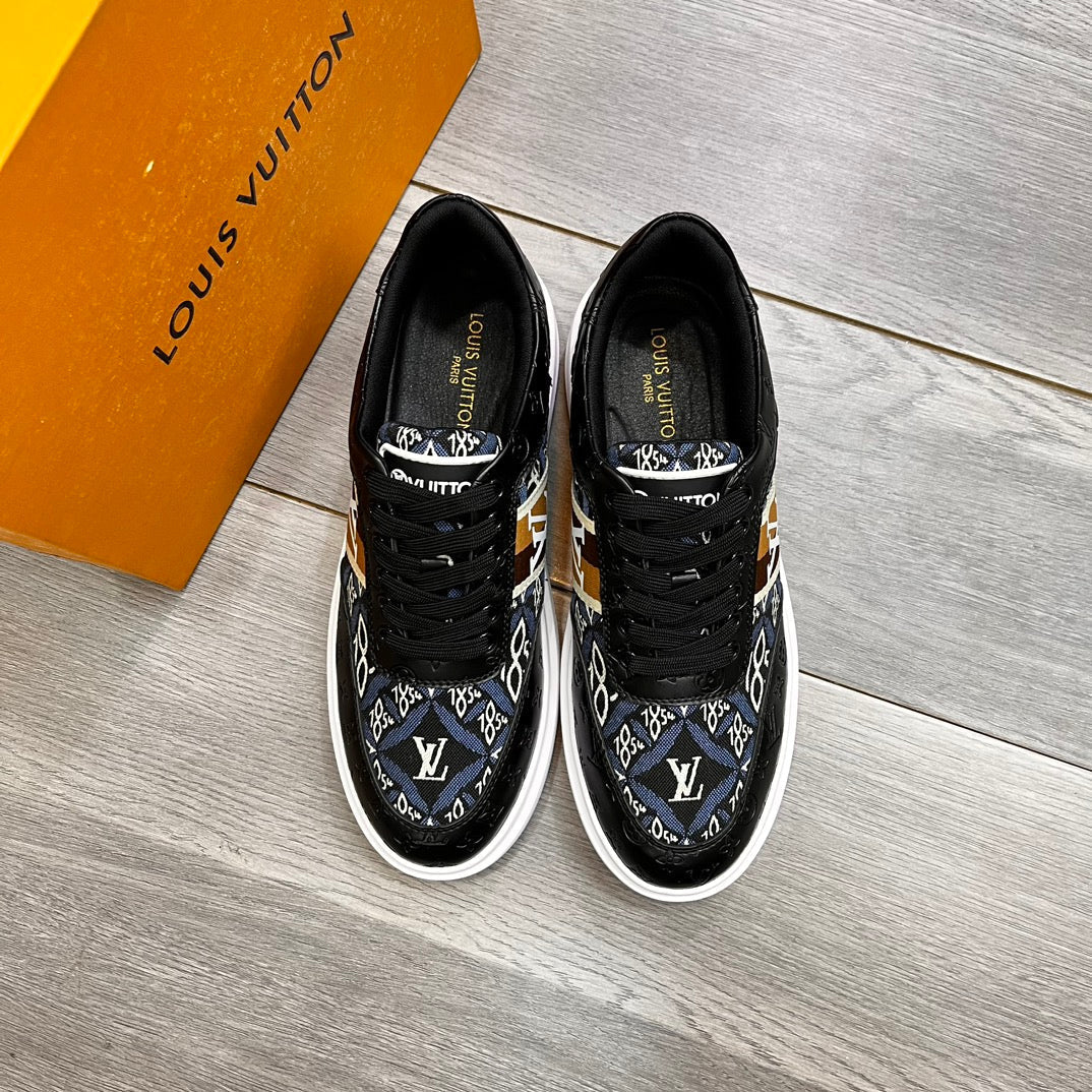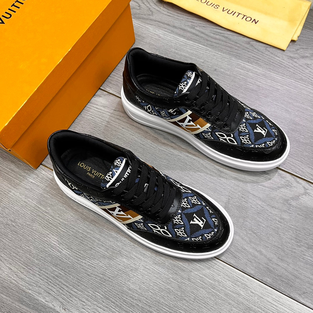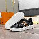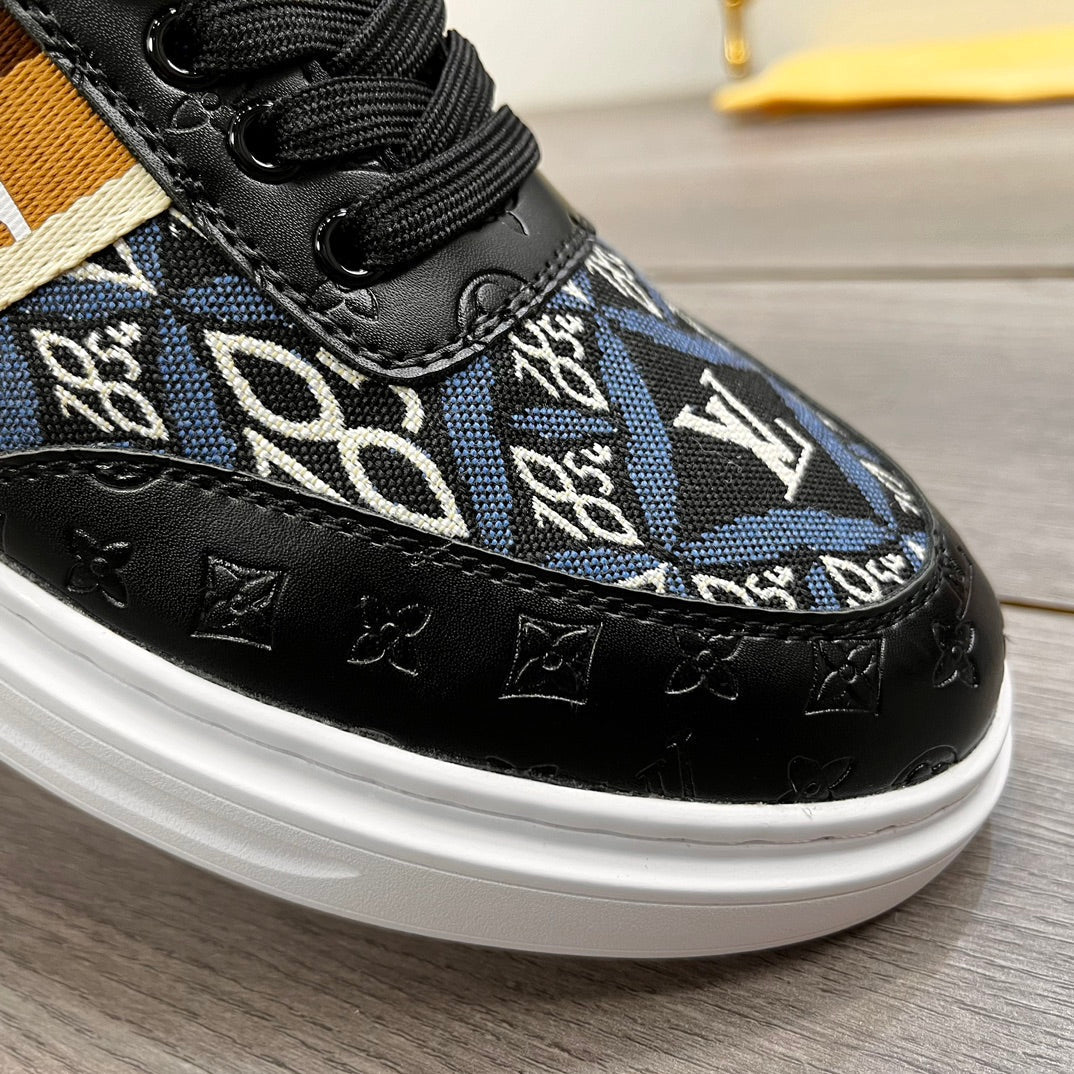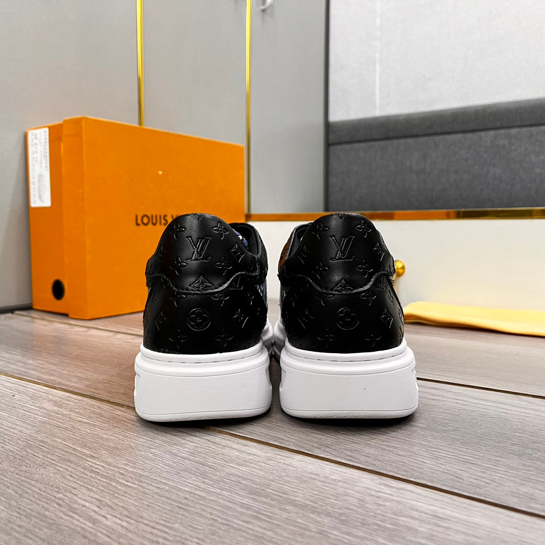 LV TRAINER IN BLACK EMBOSSED CALFSKIN AND MONOGRAM FABRIC