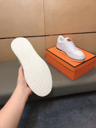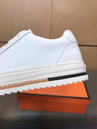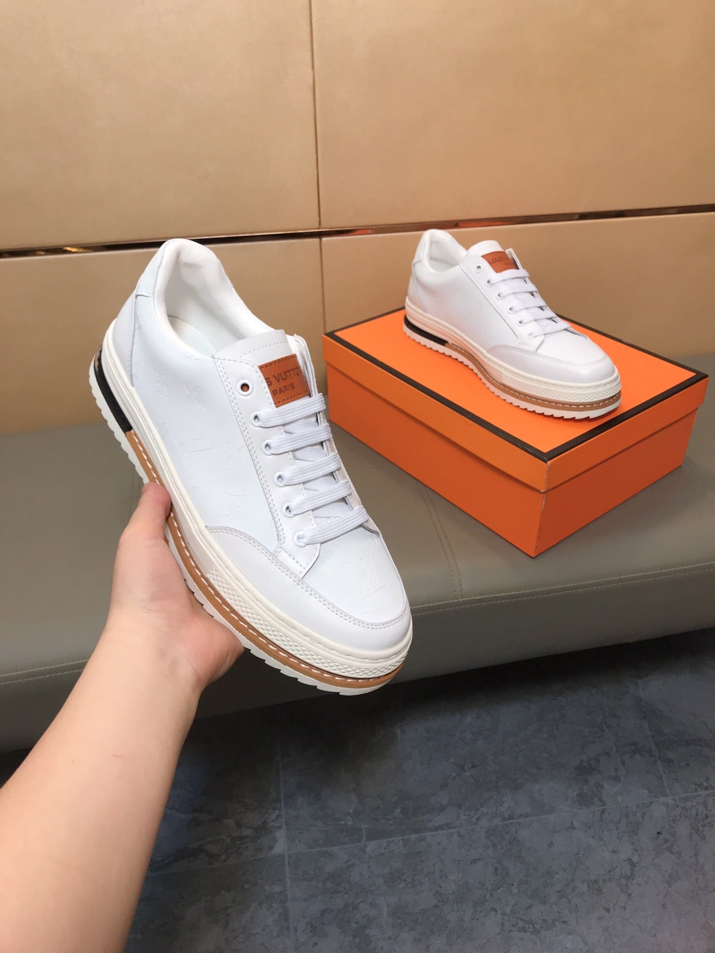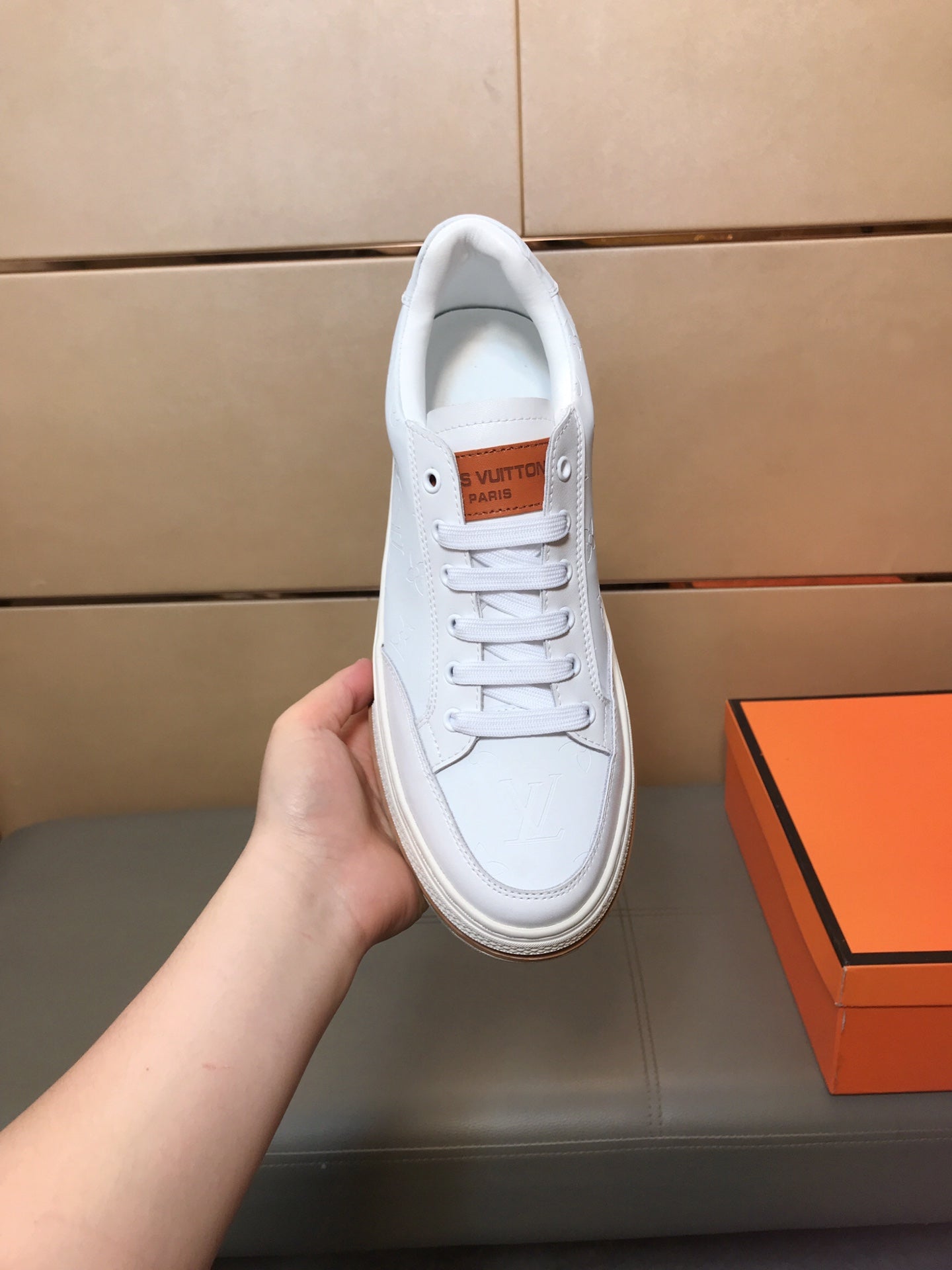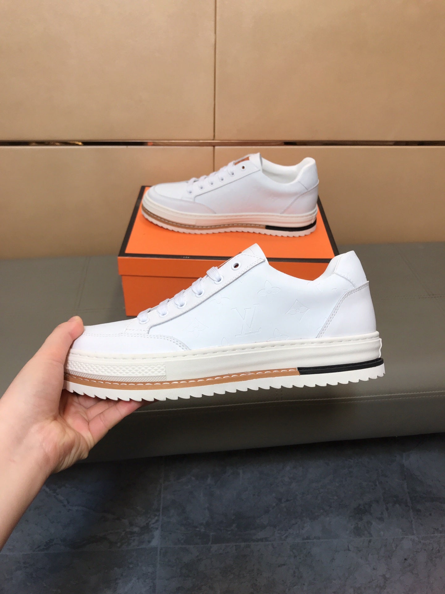 LV TRAINER IN EMBOSSED WHITE SUEDE