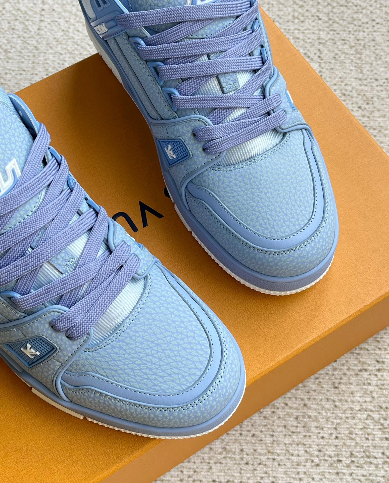 LV TRAINER SHOES SAPPHIRE BLUE GRAINED CALFSKIN