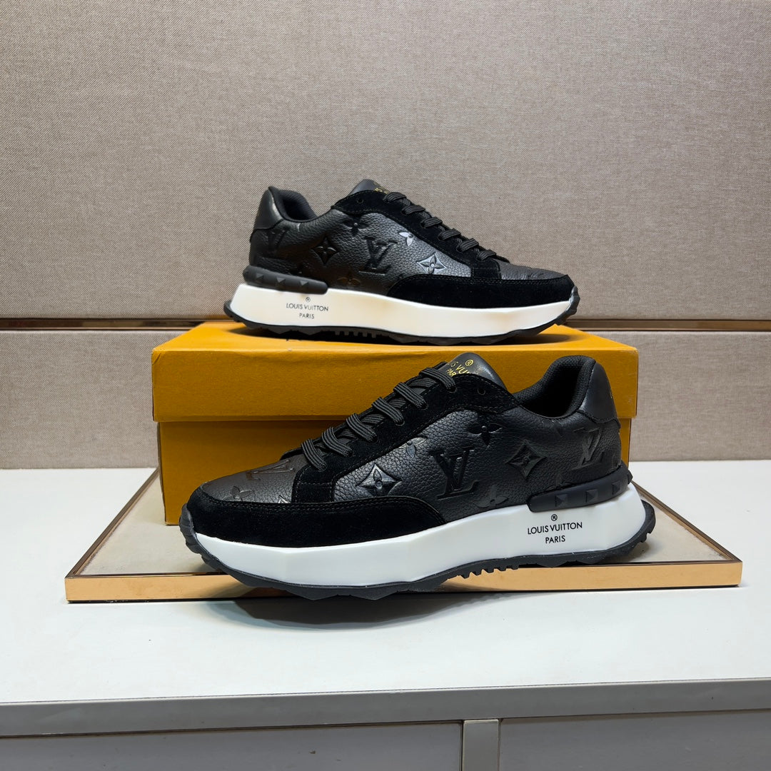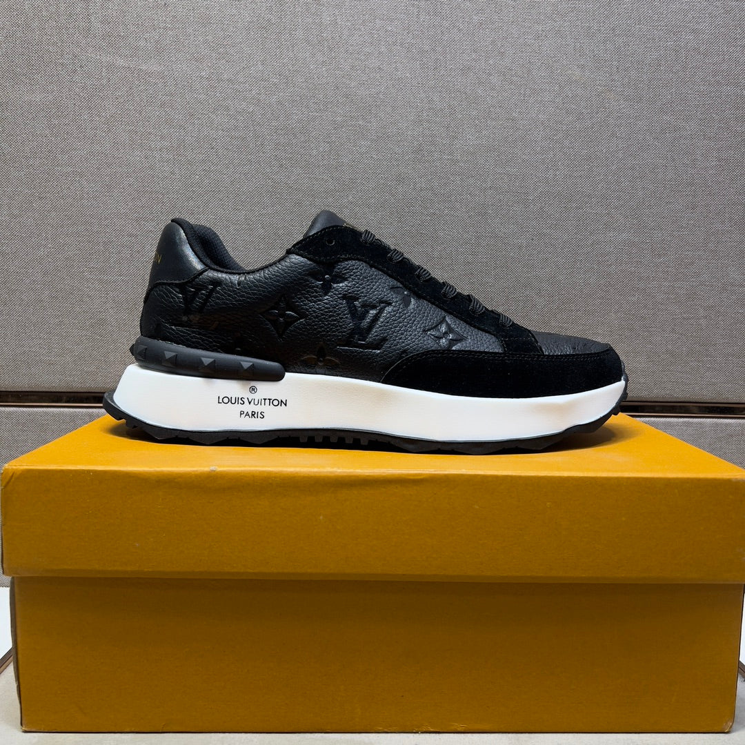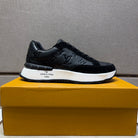LV TRAINER SNEAKER BLACK EMBOSSED CALFSKIN AND SUEDE