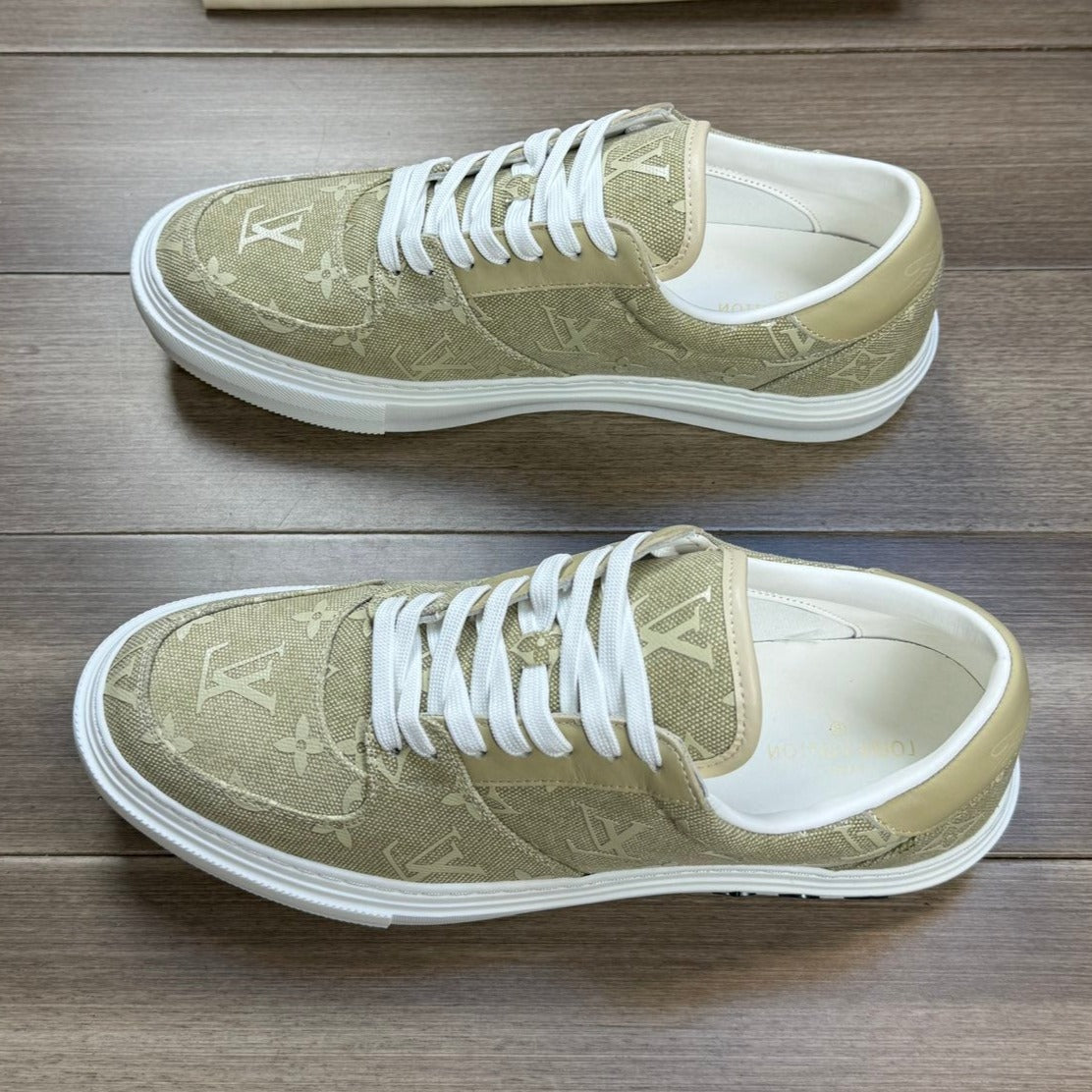 LV TRAINER SNEAKER IN OLIVE YELLOW MONOGRAM DENIM