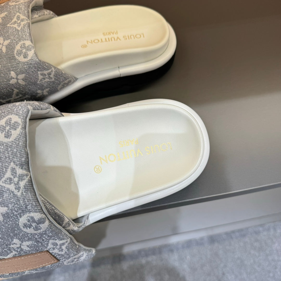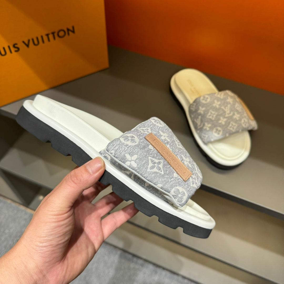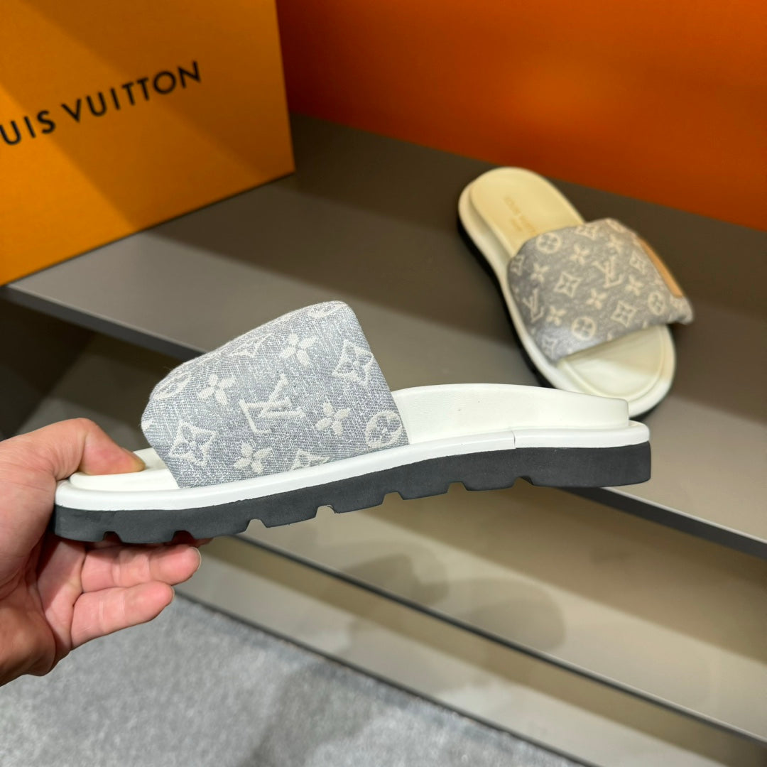 LV VELCRO SLIPPERS IN GREY MONOGRAM JACQUARD