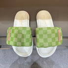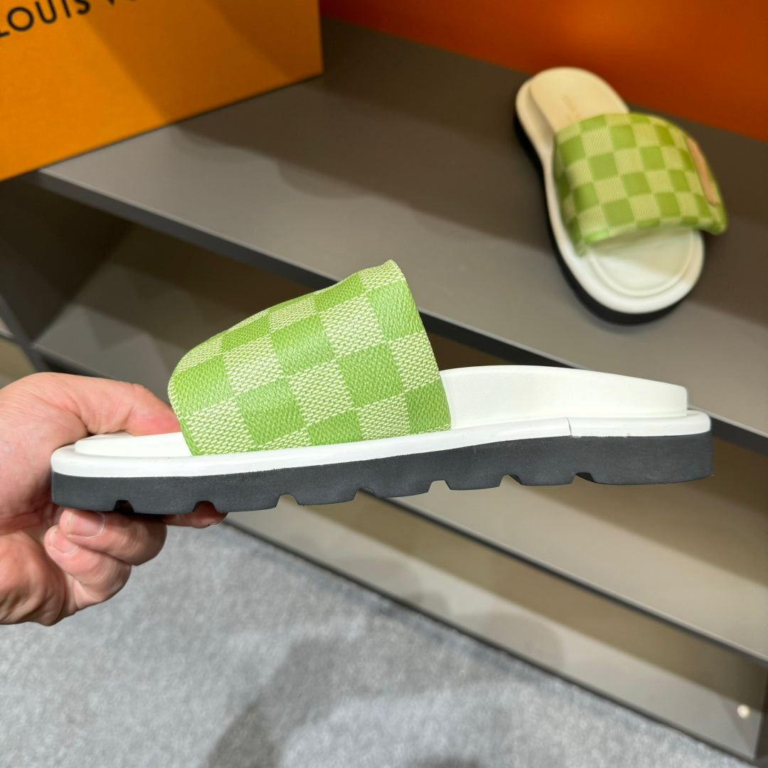 LV VELCRO SLIPPERS PEAR GREEN DAMIER MONOGRAM CALFSKIN