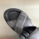 • Premium LV men's slippers, synchronizing with the 2024 early autumn runway collection. The slippers feature a high-quality fabric upper and an original, exclusive comfort sole, ensuring exceptional comfort. These are original factory-followed products.