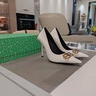 POINTED BB GOLD BUCKLE HIGH PUMPS IN WHITE CROCODILE PATTERN CALFSKIN