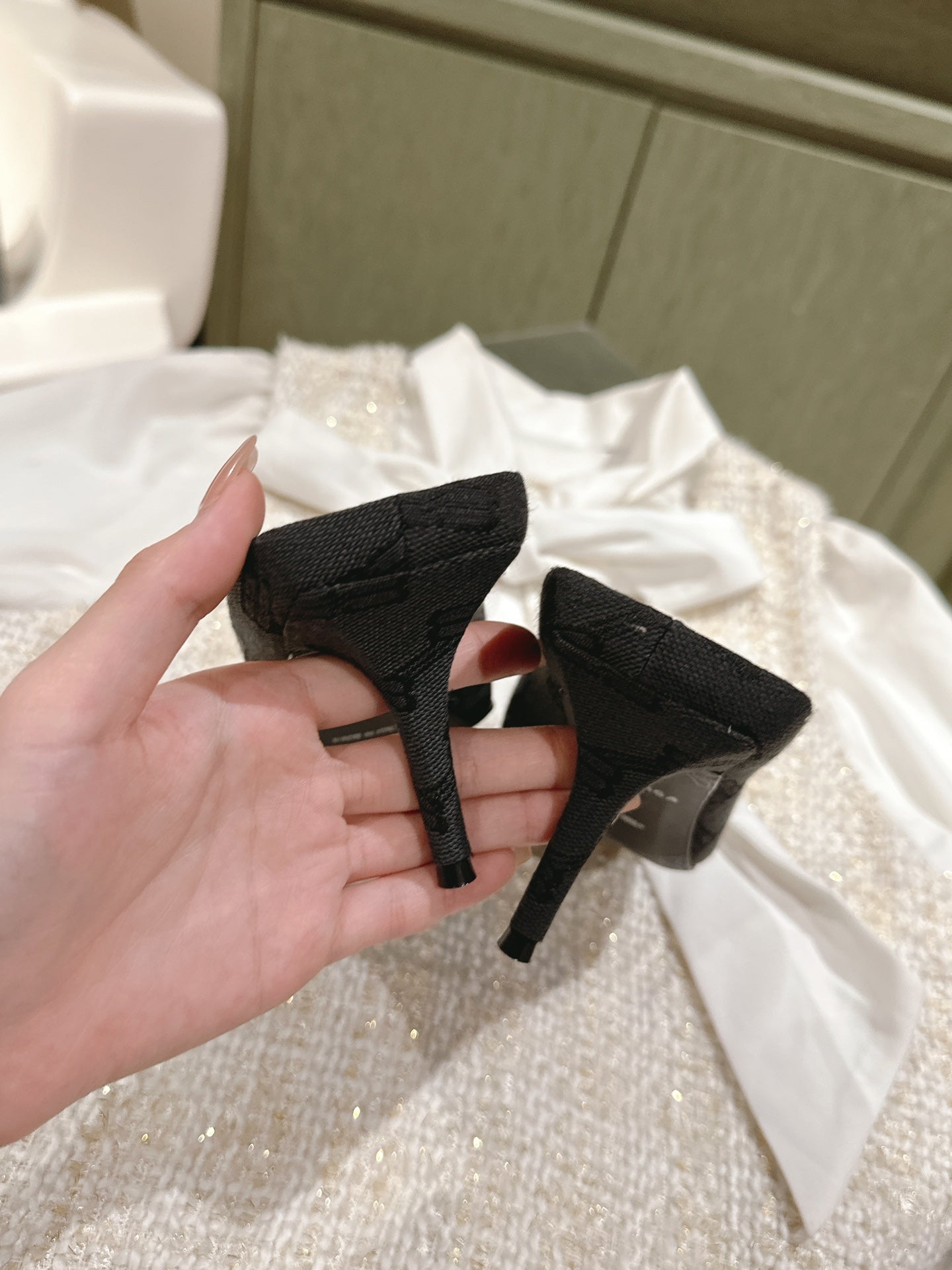 POINTED HIGH MULES IN BLACK MONOGRAM JACQUARD FABRIC