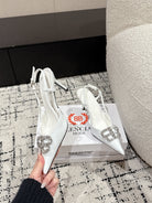 POINTED HIGH SLINGBACK IN WHITE PATENT CALFSKIN WITH CRYSTAL BUCKLE