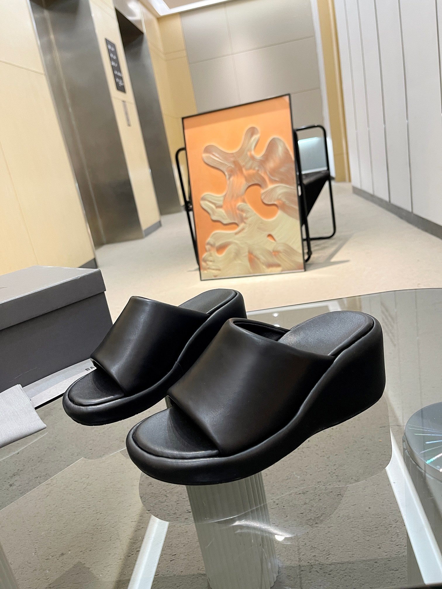 WEDGE SANDALS IN BLACK SOFT LAMBSKIN