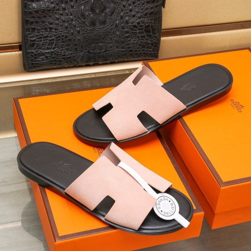 HM IZMIR SANDAL BLACK AND PEACHY CALFSKIN