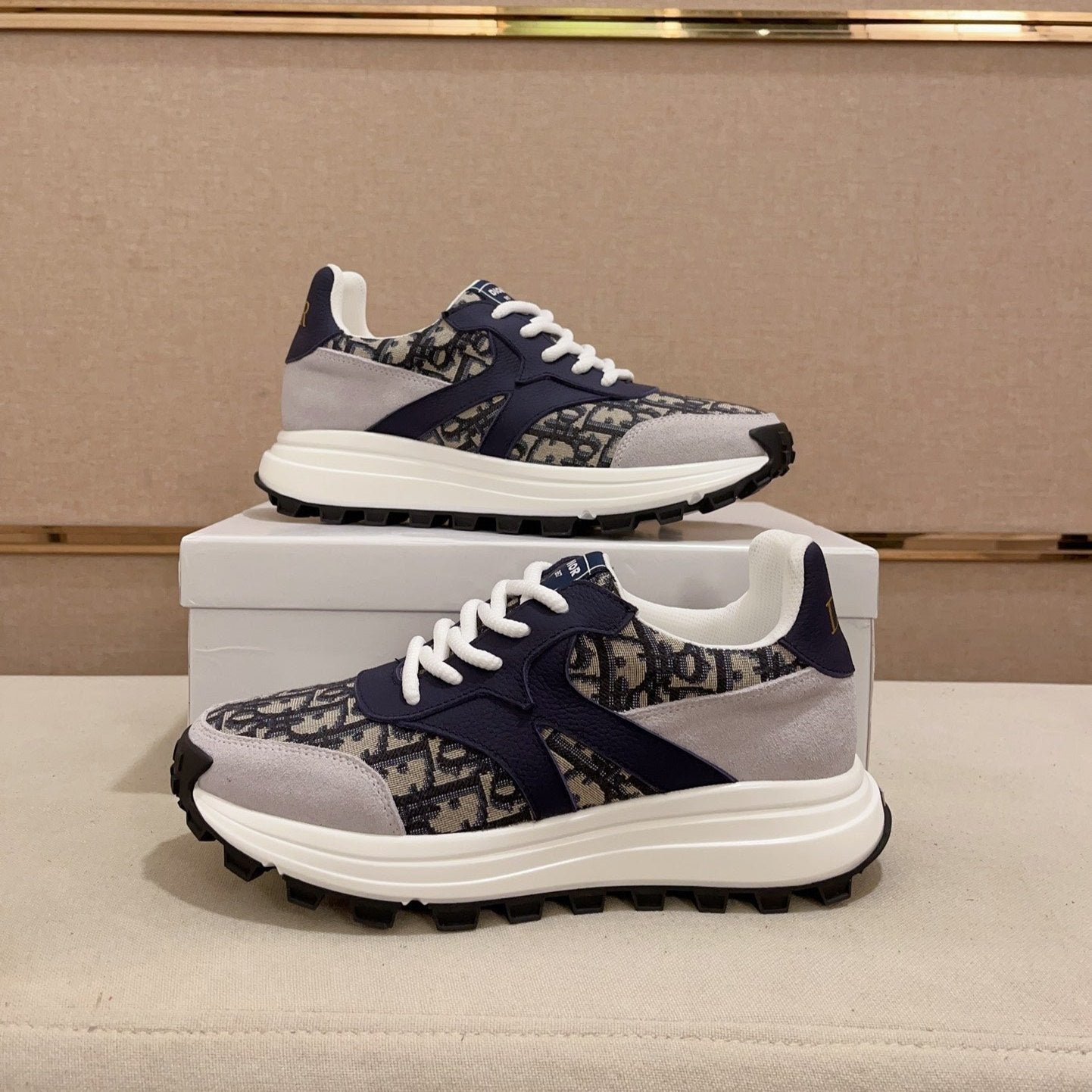 CD LOW TOP BASIC SNEAKER NAVY AND BEIGE JACQUARD